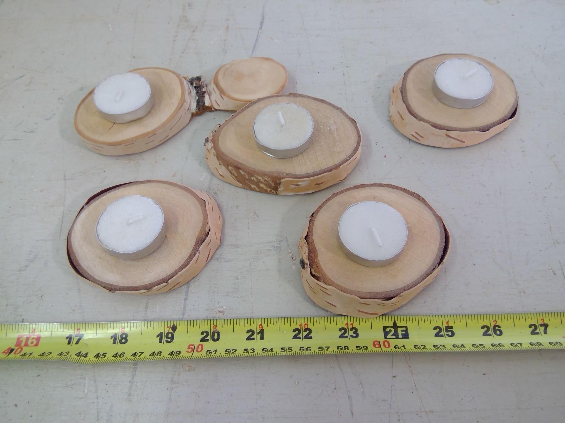 5X HOMEMADE WOODEN CANDLE HOLDERS