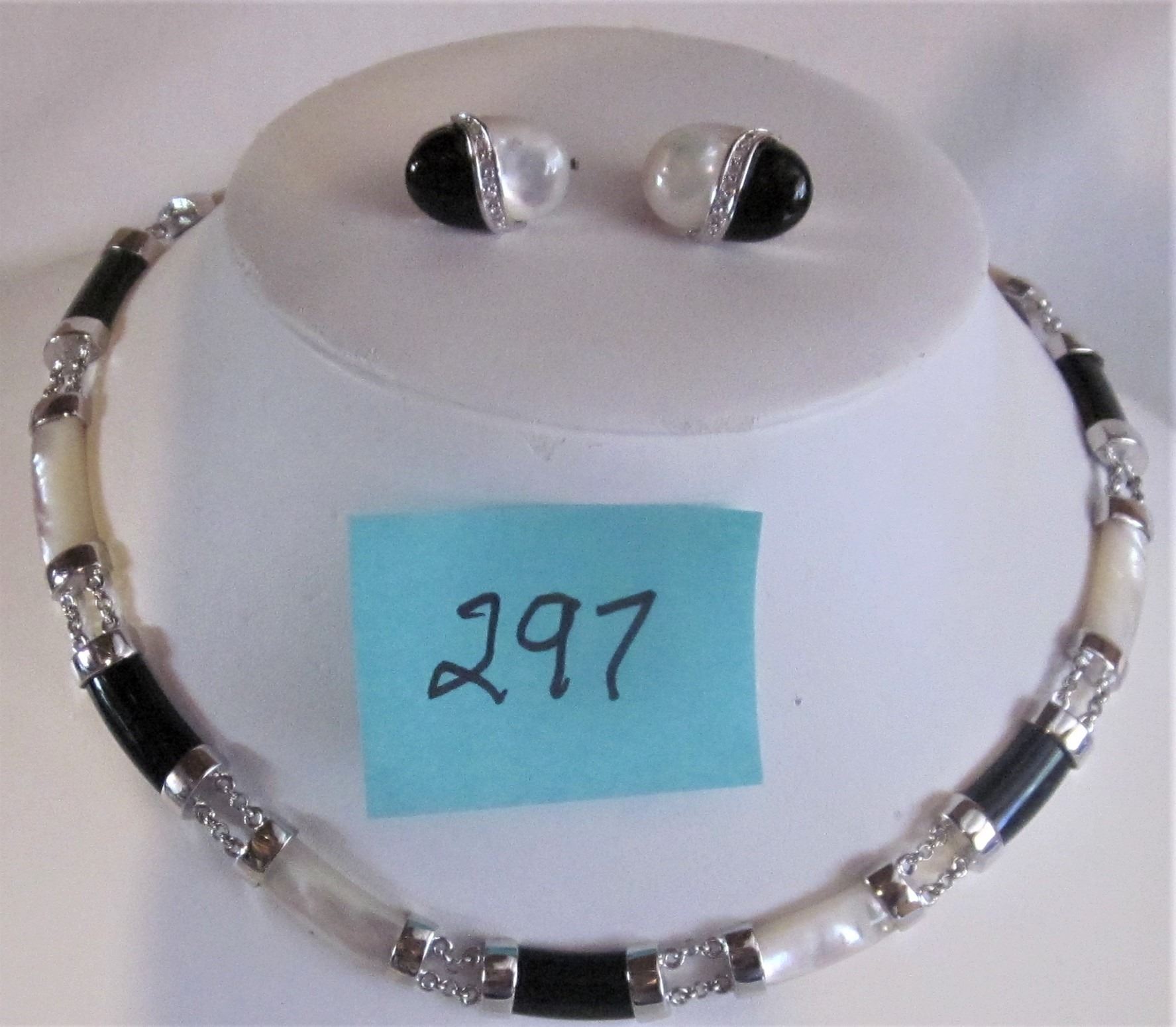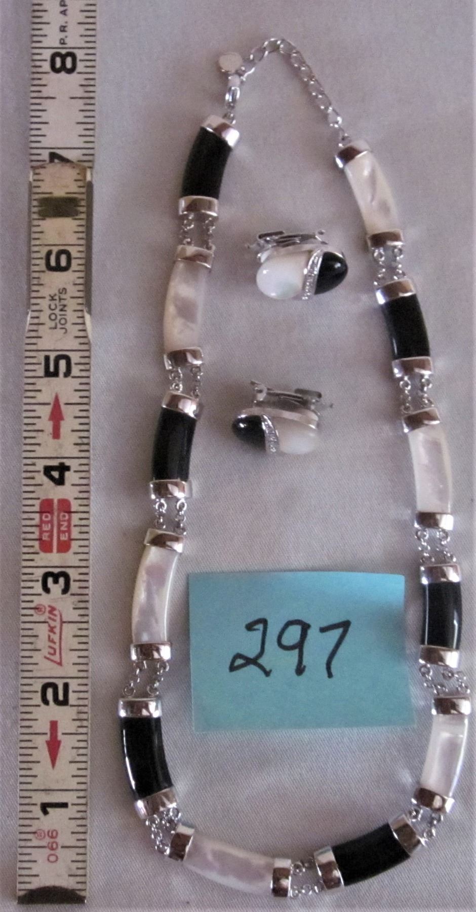 5th AVENUE S/C NECKLACE/ BLACK/ABALONE STONES AND CLIP ON EARRINGS