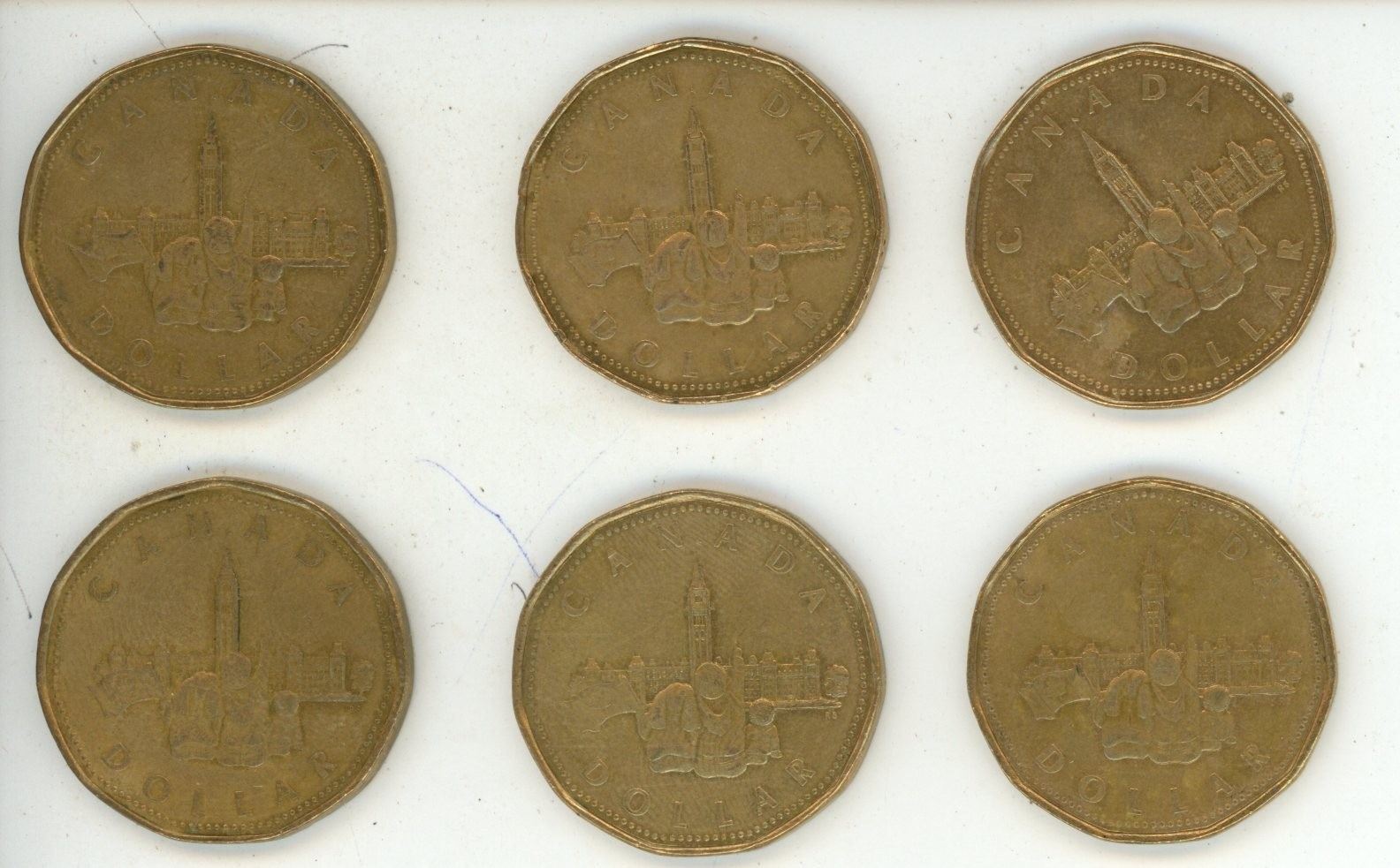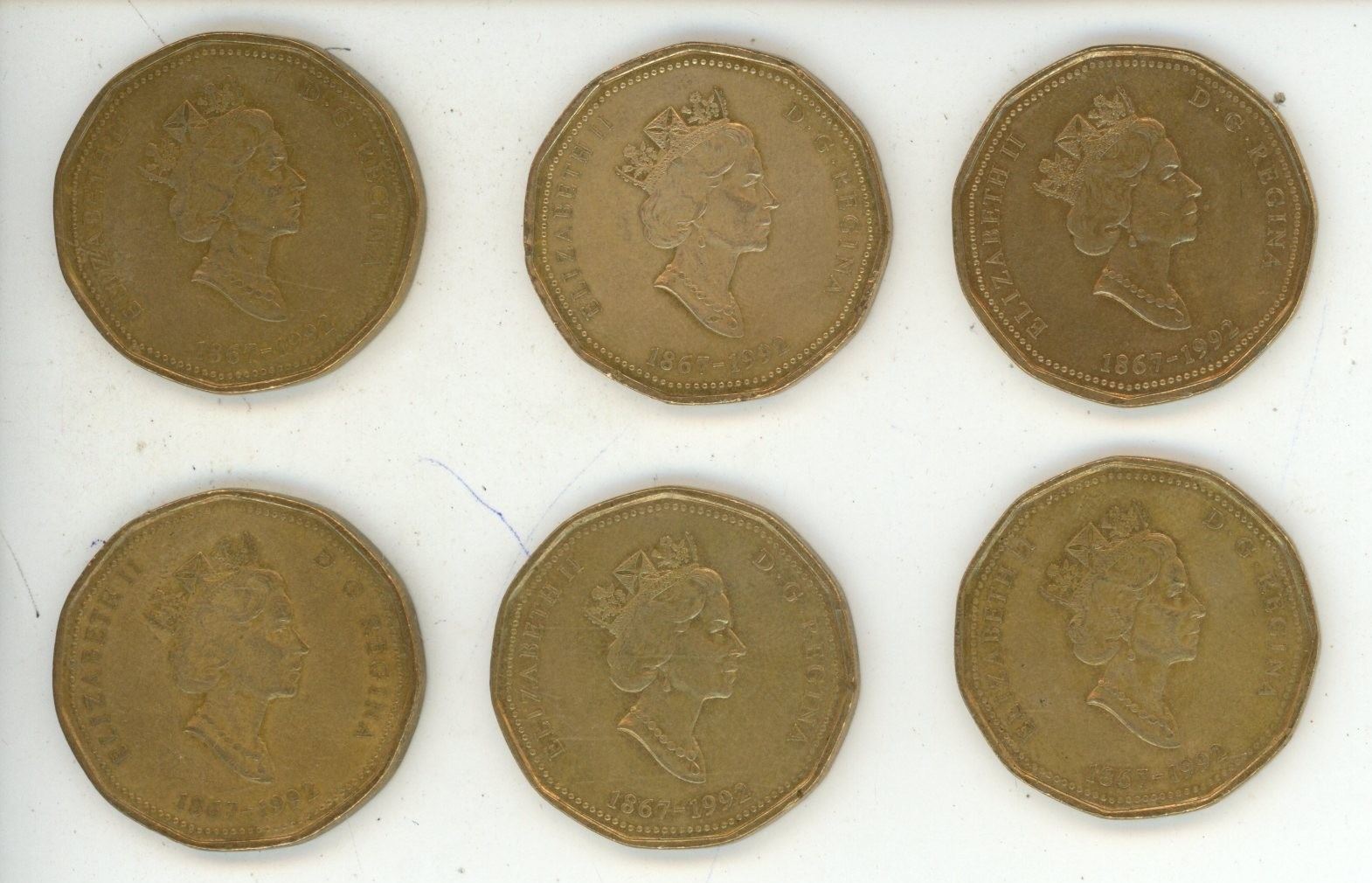 (6) 1867-1992 Parliament Canadian One Dollar Coins.