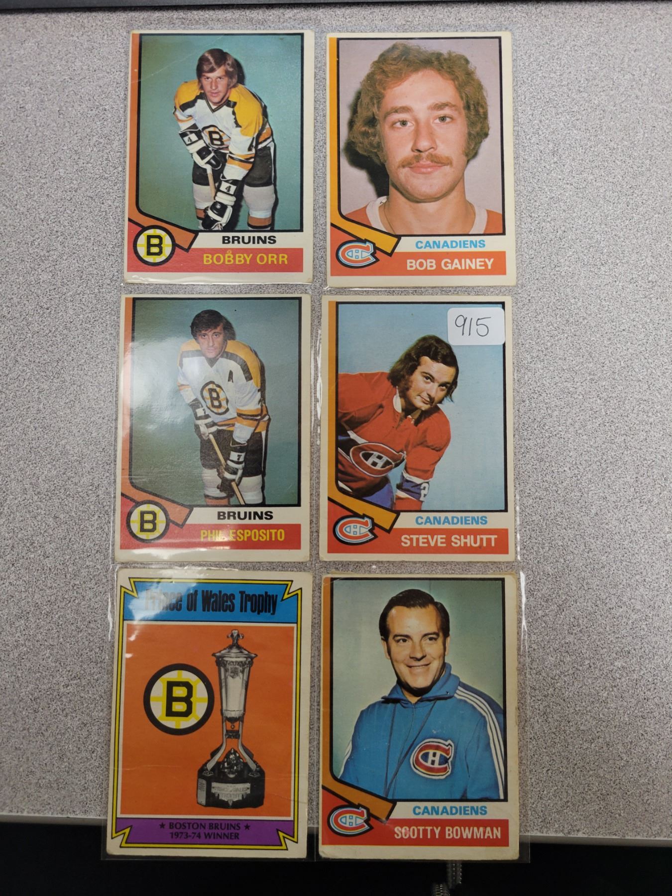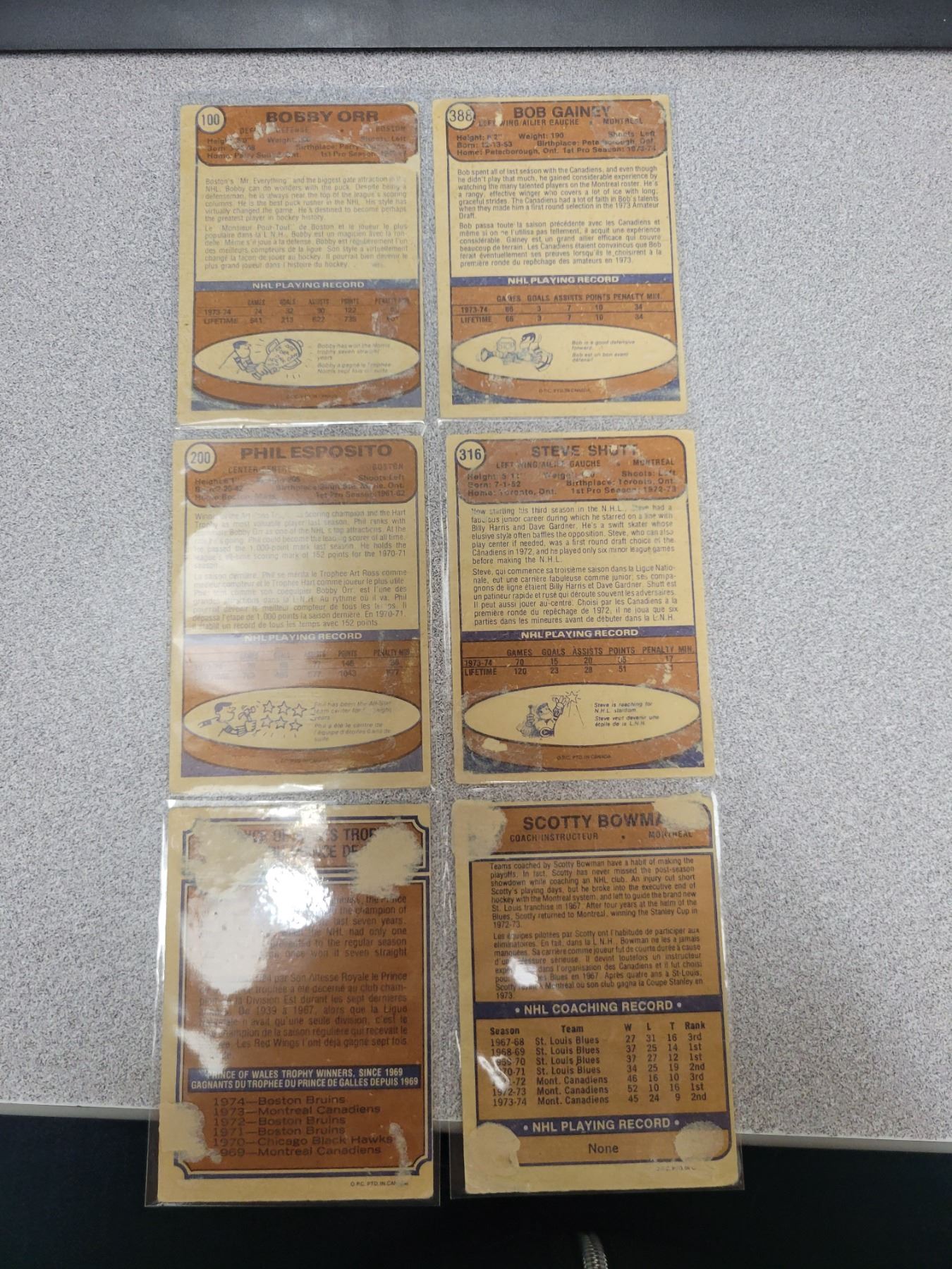 6 1974-75 cards - rookie Bowman, Shutt & Gainey *glue on backs*