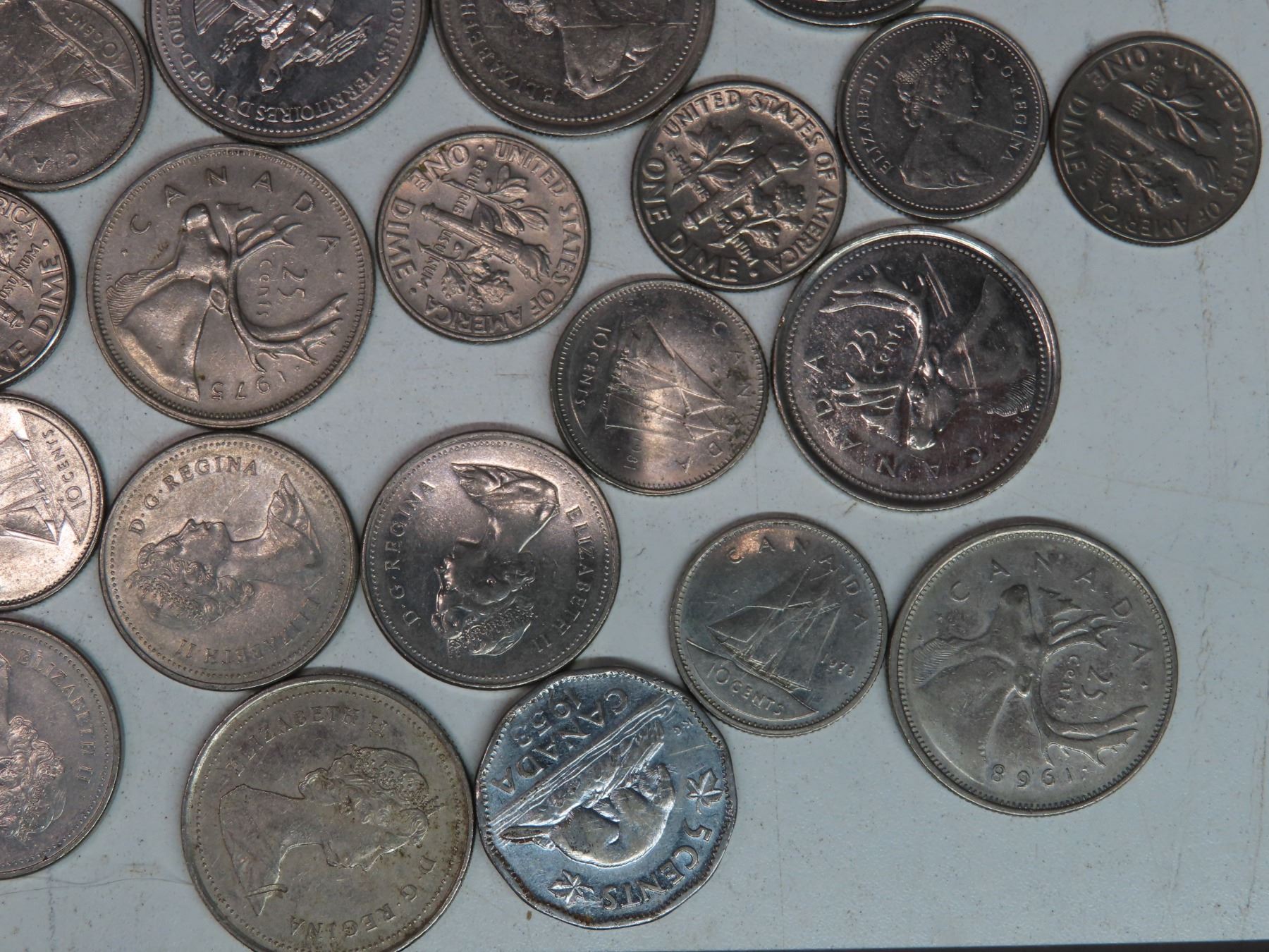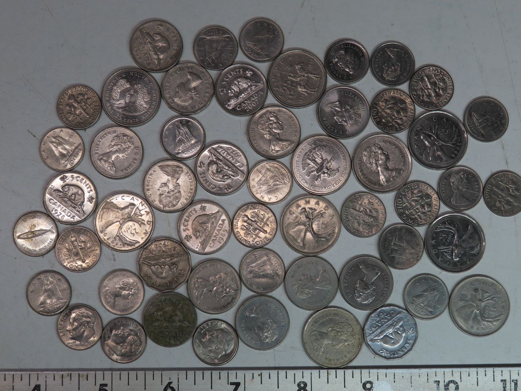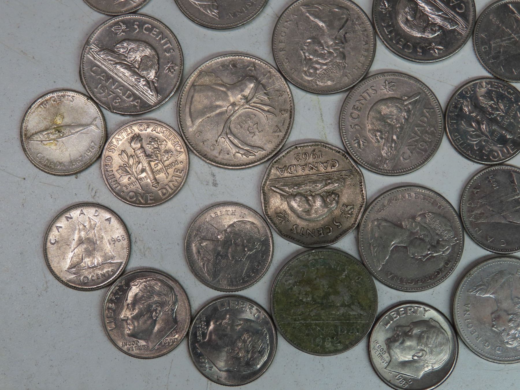 6.5 oz bag of Canadian & USA coins (assorted years)