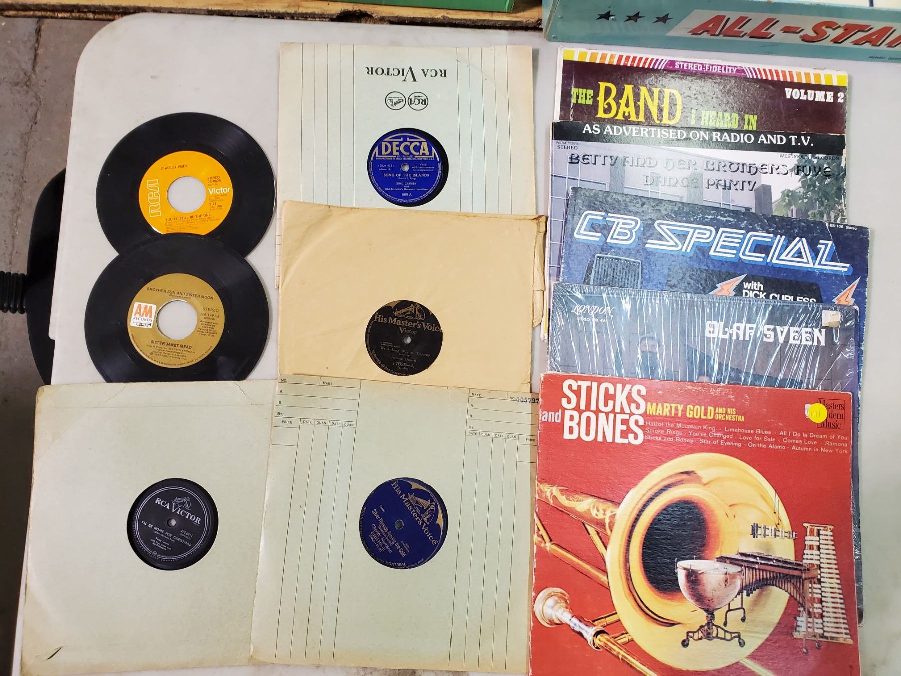 6 ASSORTED RECORDS & EMPTY ALBUMS