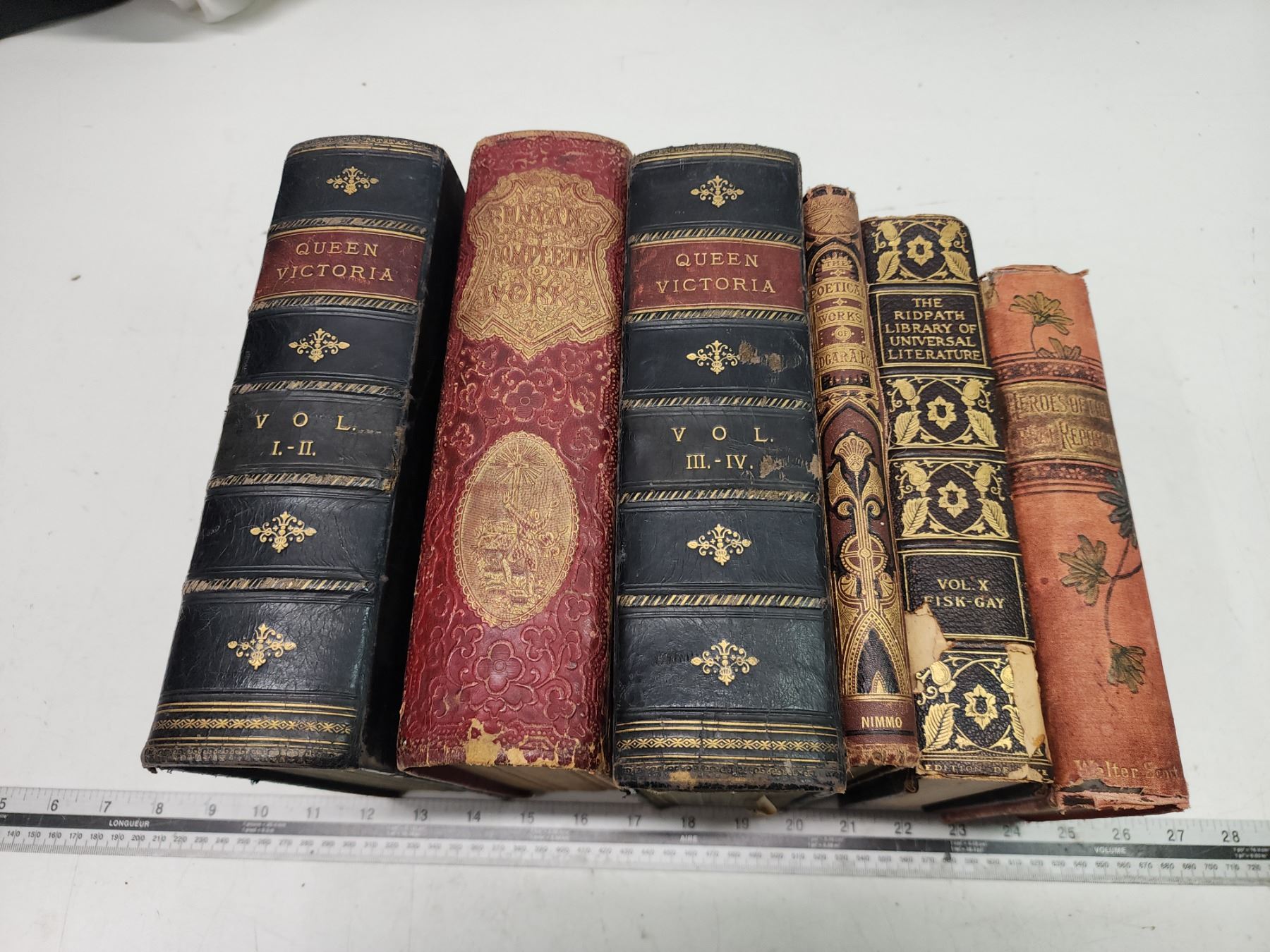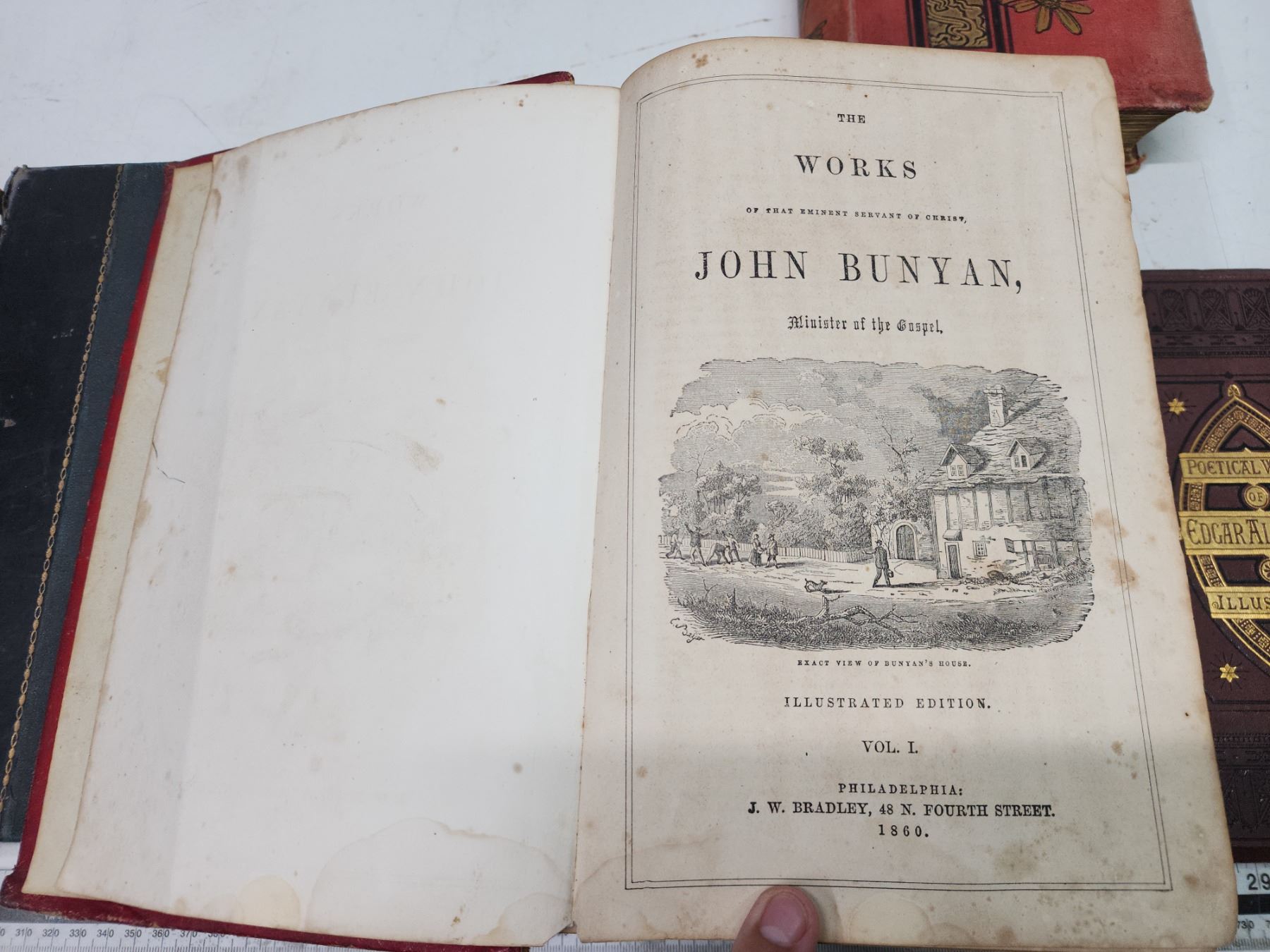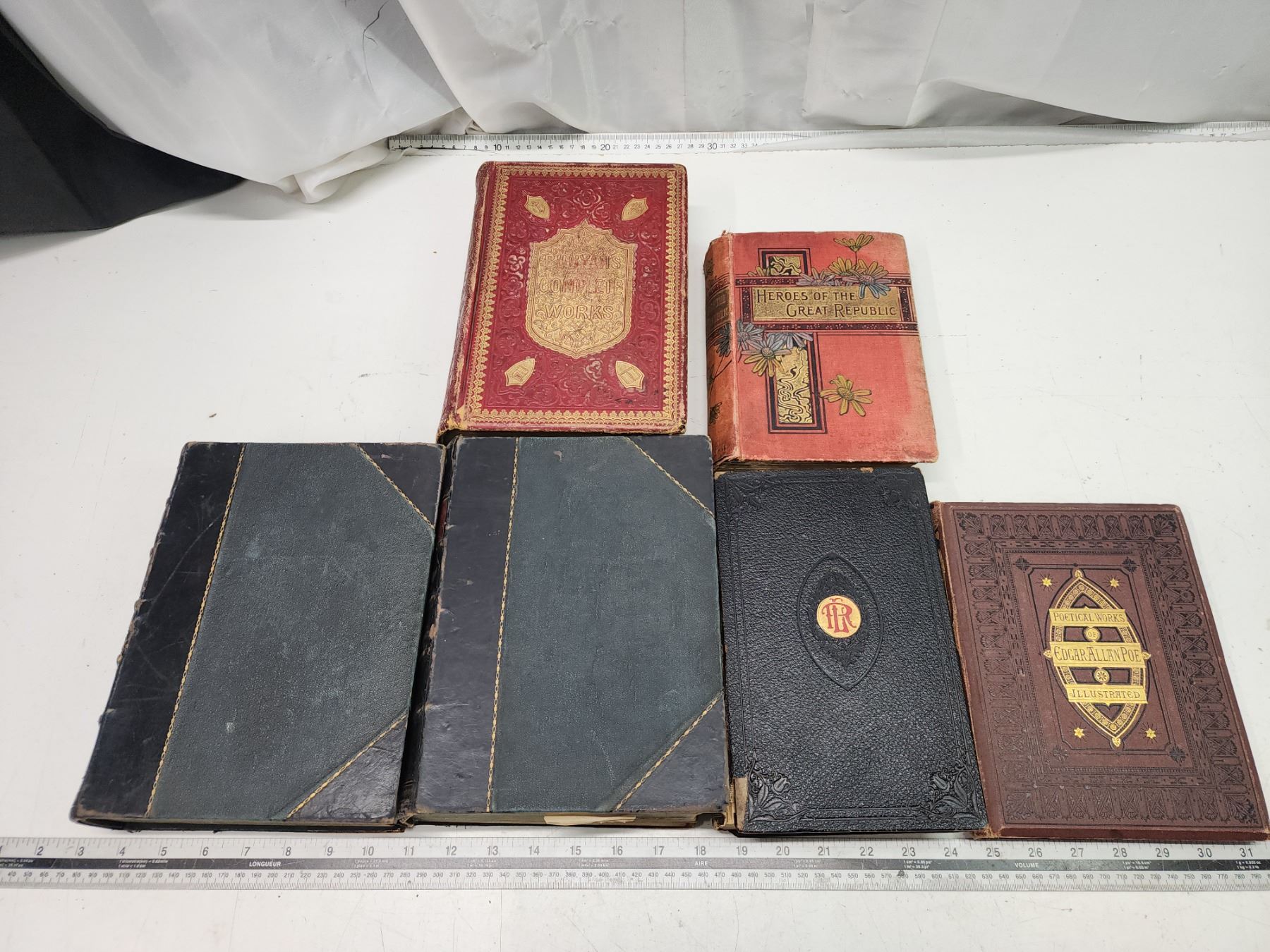 6 Antique books - Poems by Edgar Allen Poe, Works of Bunyan, etc.