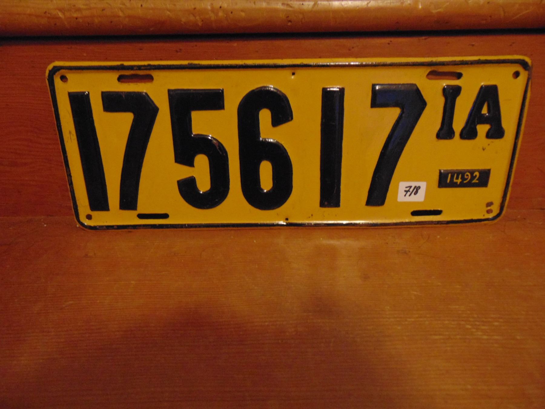 6 BY 16" HEAVY TRUCK PLATE DATE UNKNOWN