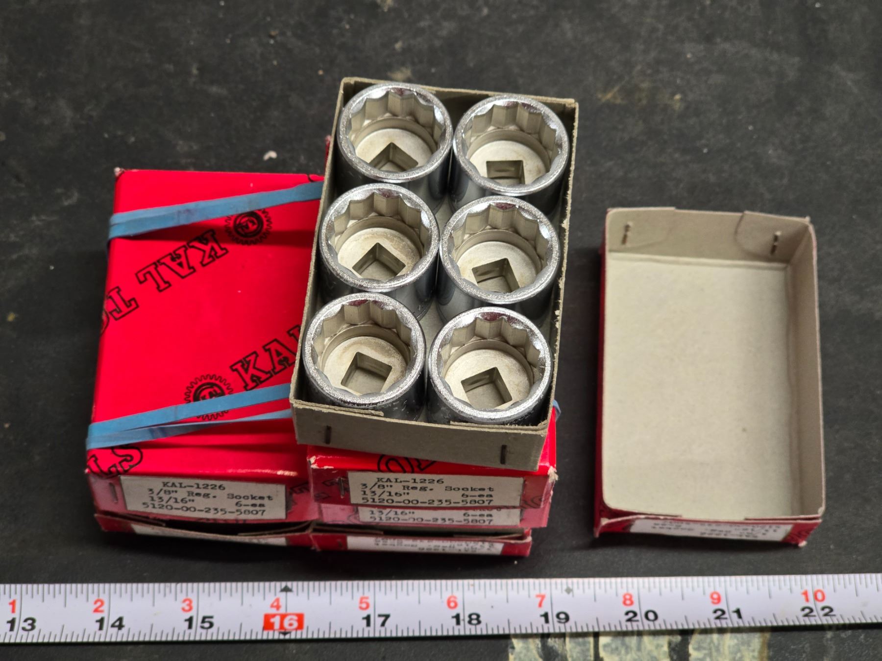6 Boxes of 13/16, 3/8" sockets - new