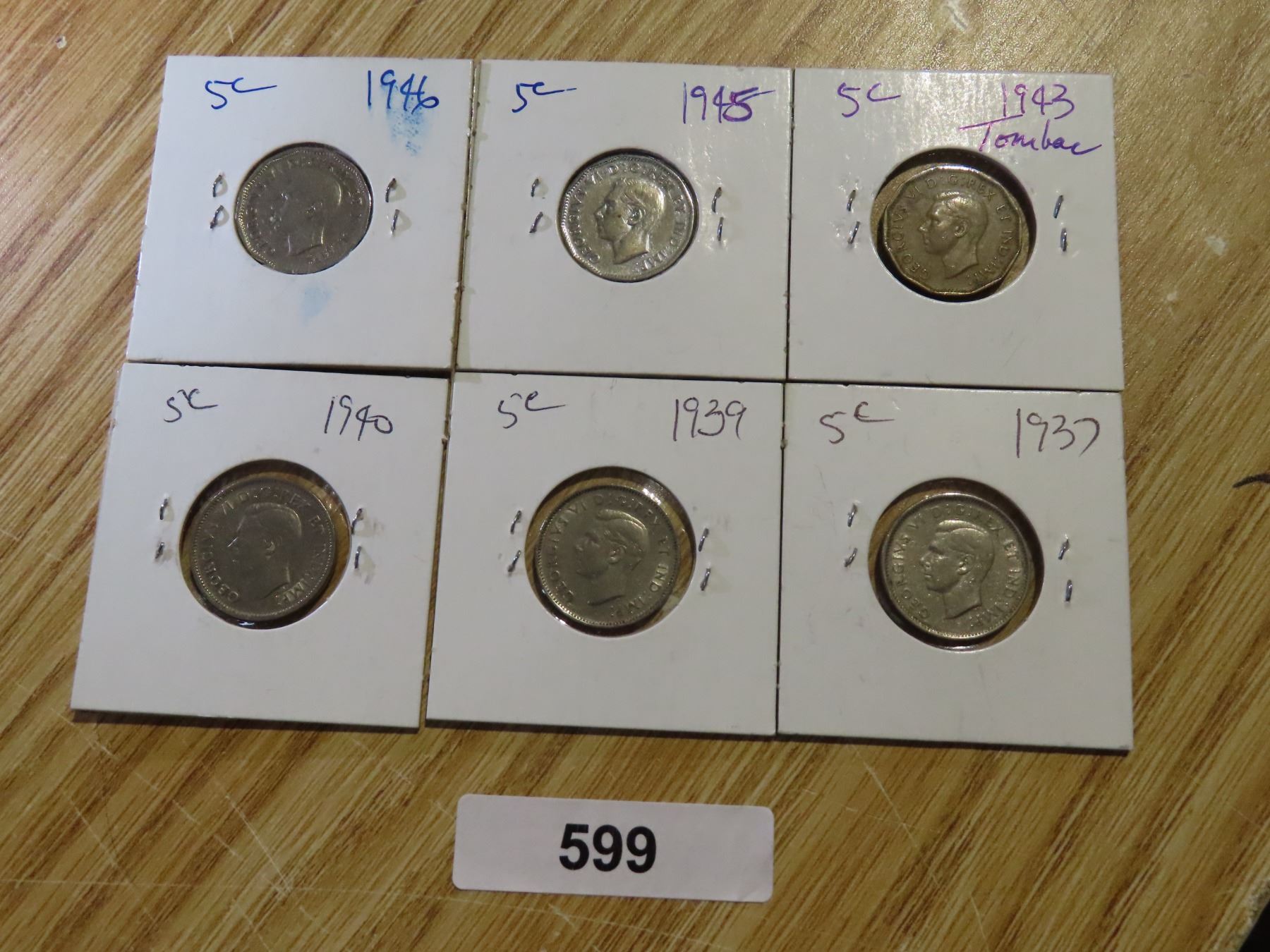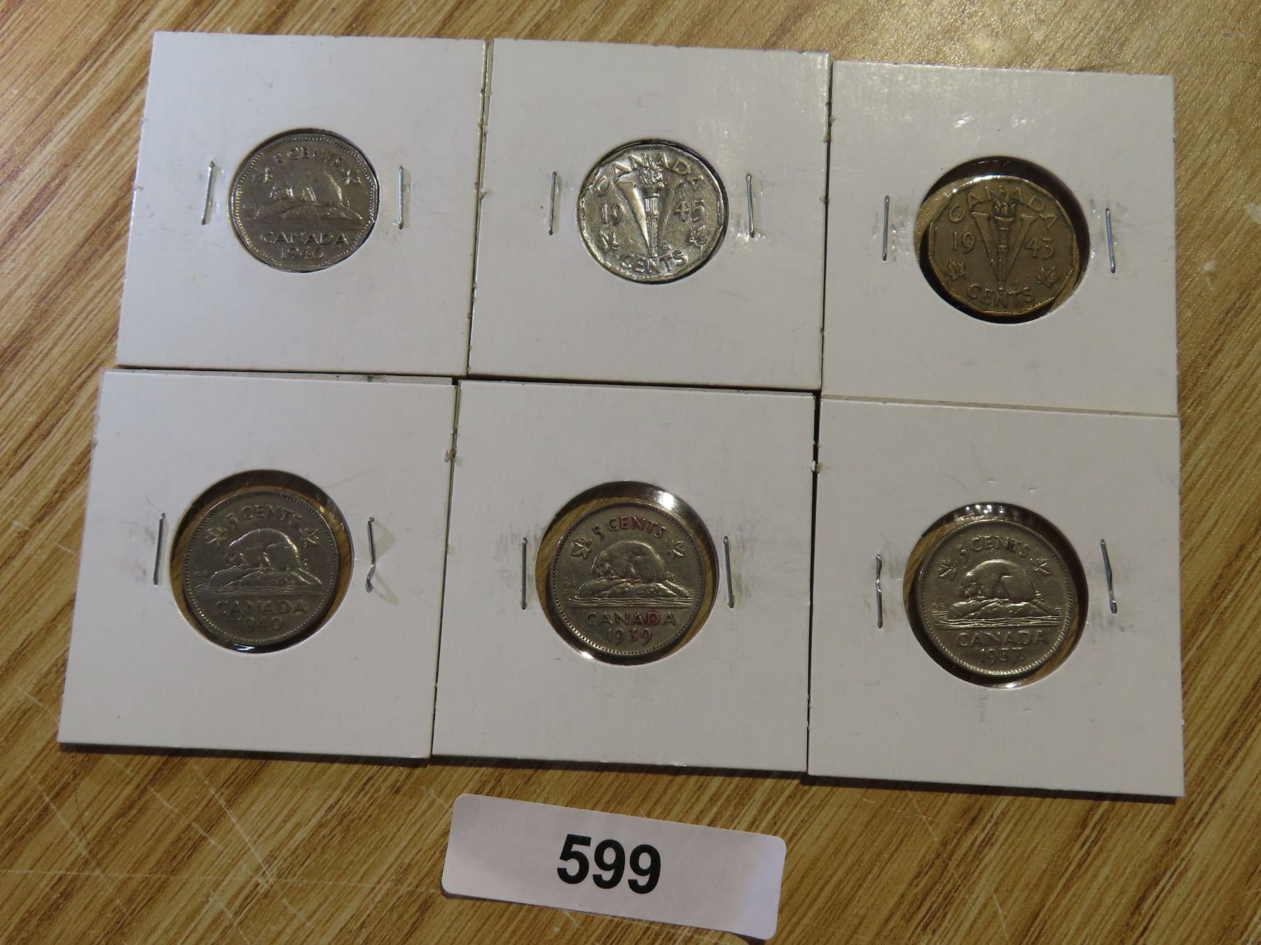6 - CDN 5 CENT 1937,39,40,43 TOMBAC, 45,46 FG-VF