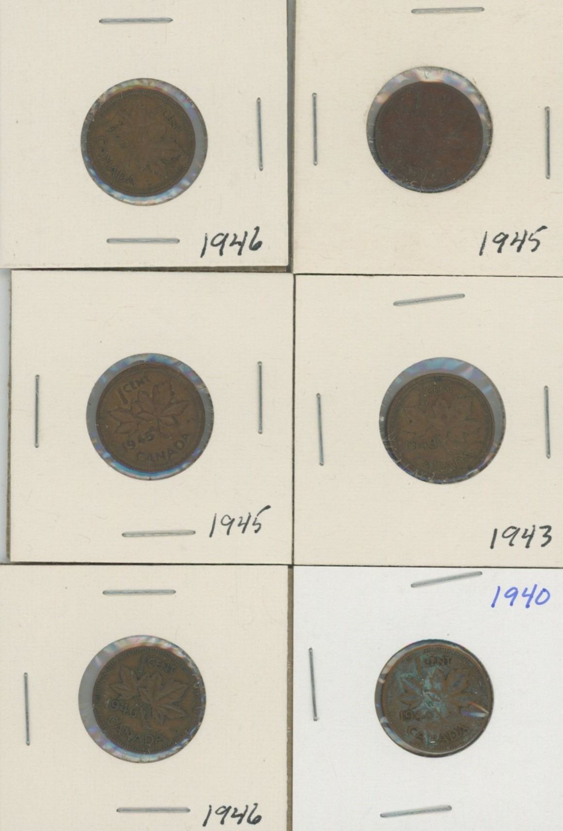 (6) Canadian Pennies 1940-1946
