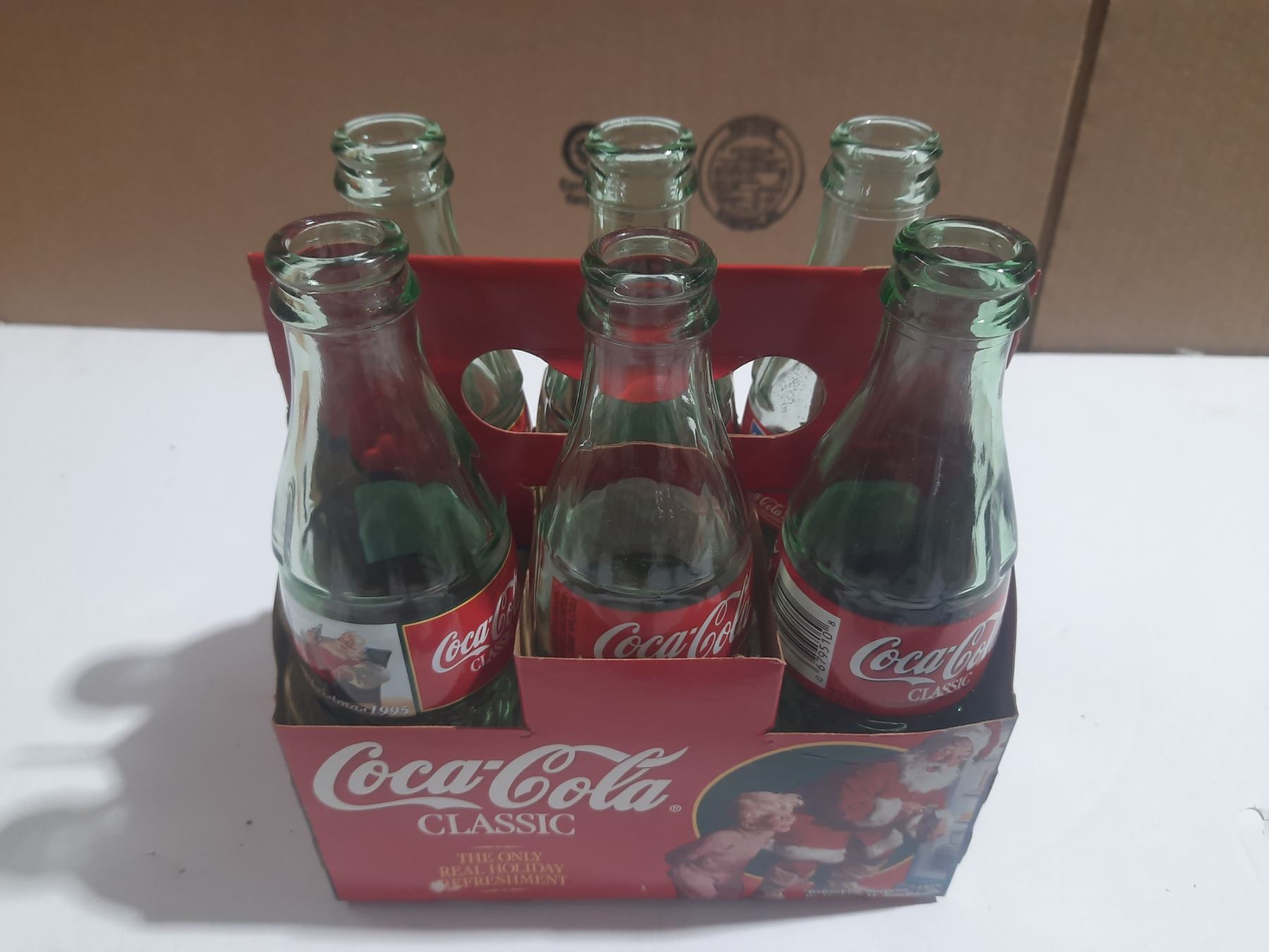 (6) Christmas 1995 Coca Cola Empty Bottles.