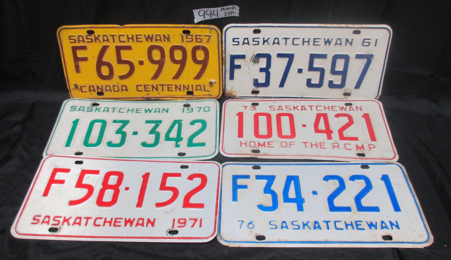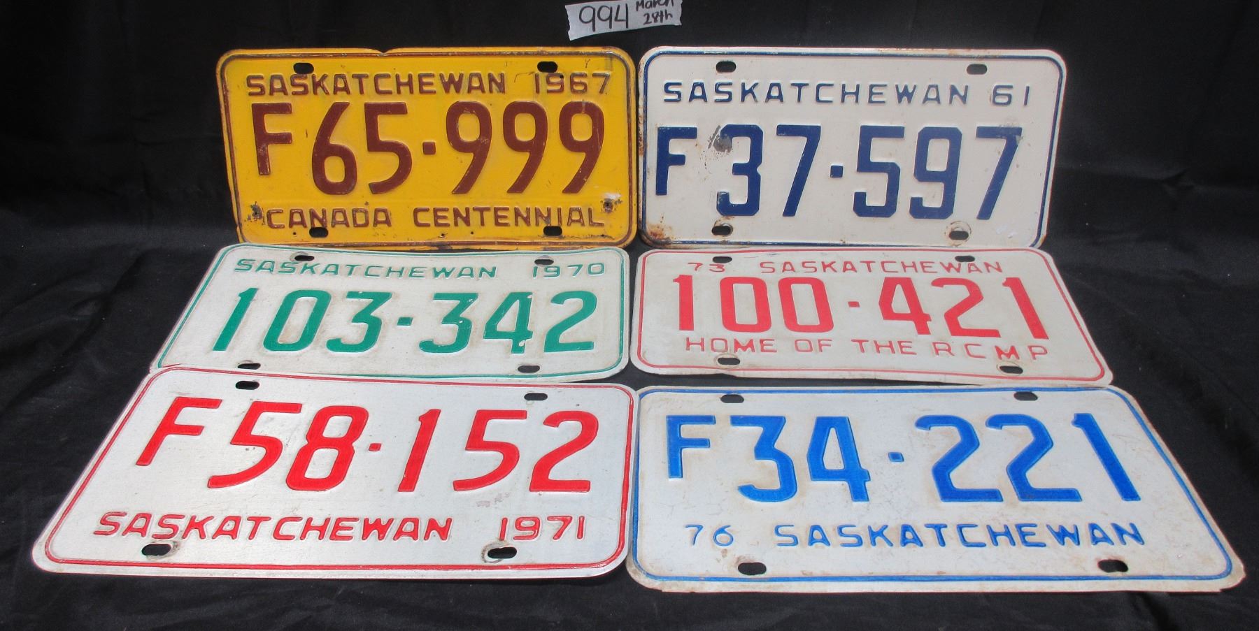 6 Different 1960's& 70's Saskatchewan License Plates