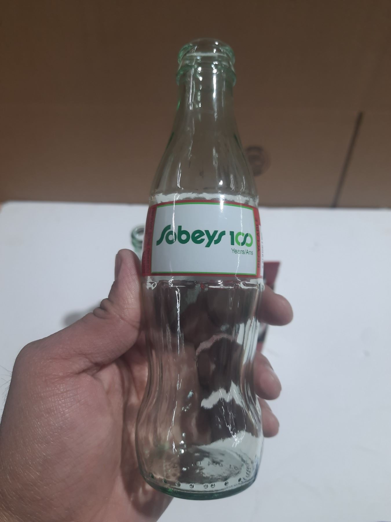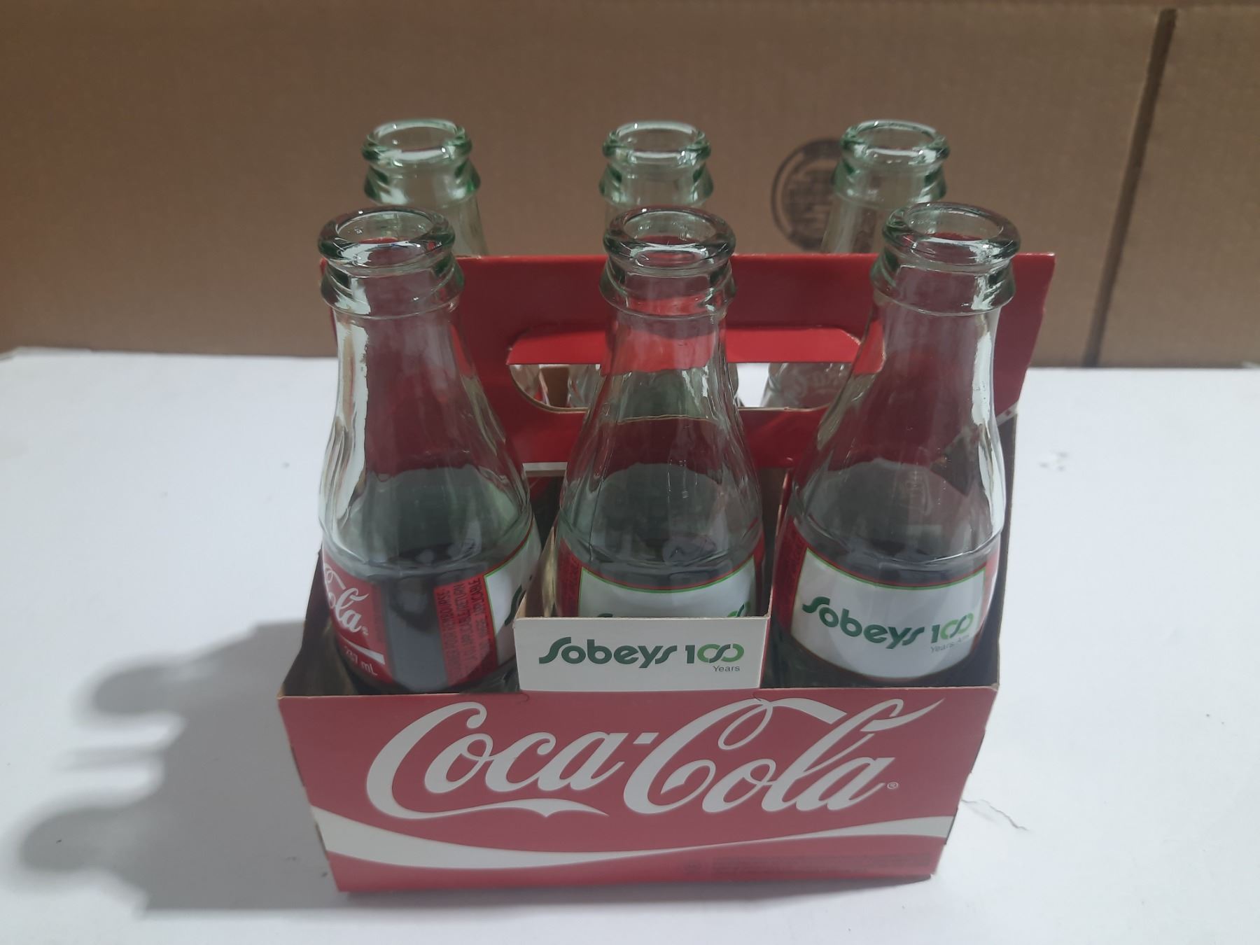 (6) Fobeys 100 Years Congratulations on 100 Years of Business from Coca Cola Empty Bottles.