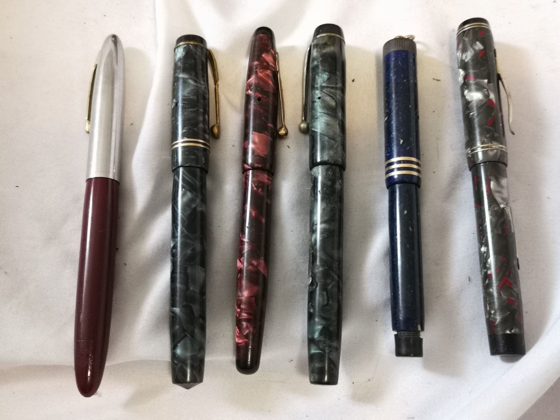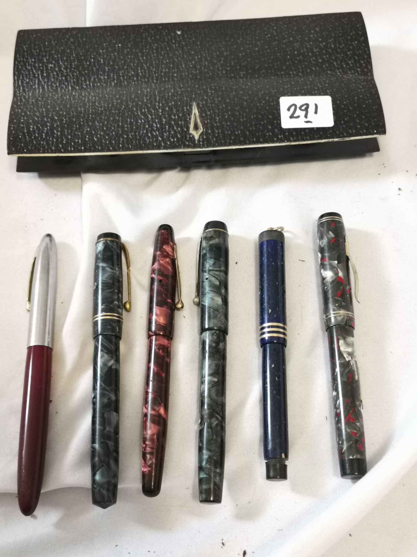(6) Fountain Pens (Missing Nibs), Sheaffer’s Box