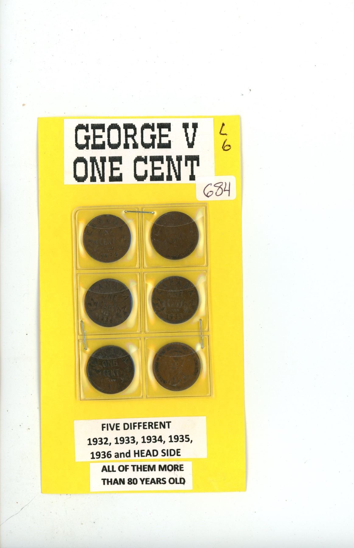 (6) George V 1¢ Coins (Years: 1932, 1933, 1934, 1935, 1936, & Head Side)