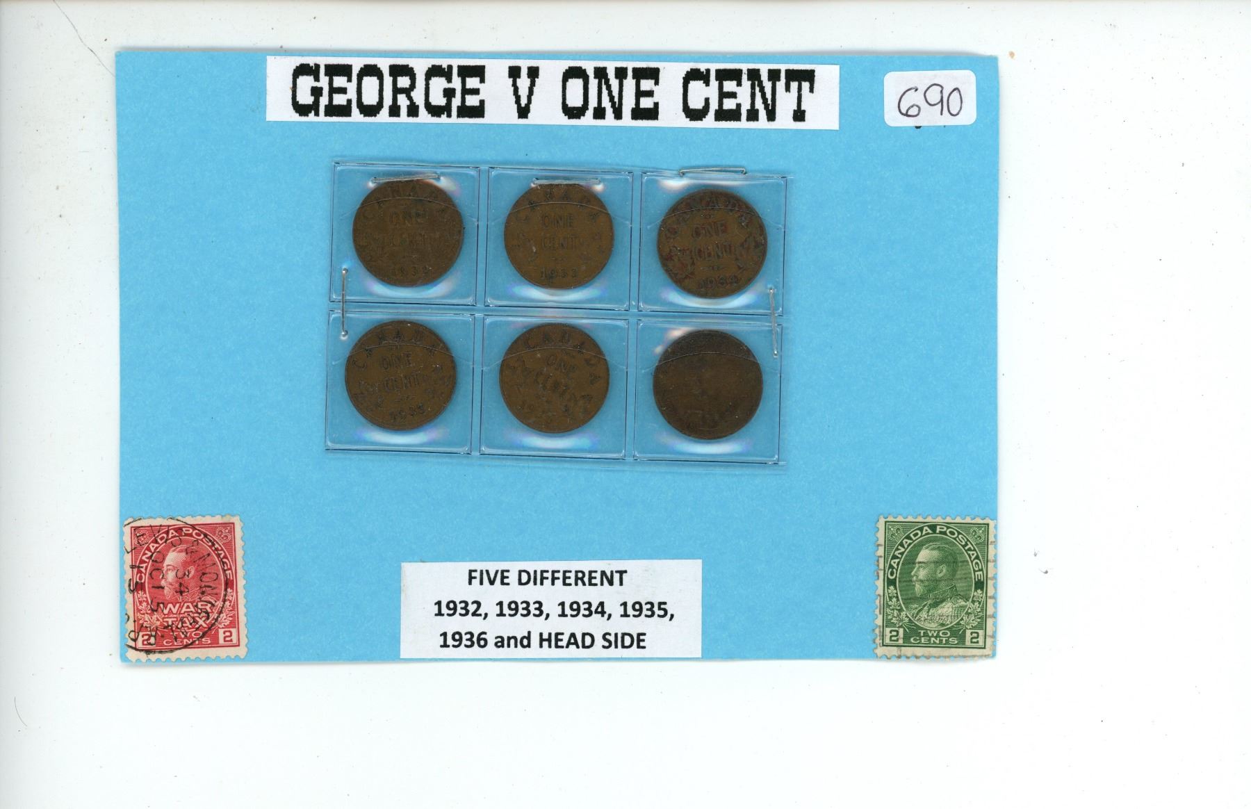 (6) George V 1¢ Coins (Years: 1932, 1933, 1934, 1935, 1936, & Head Side)