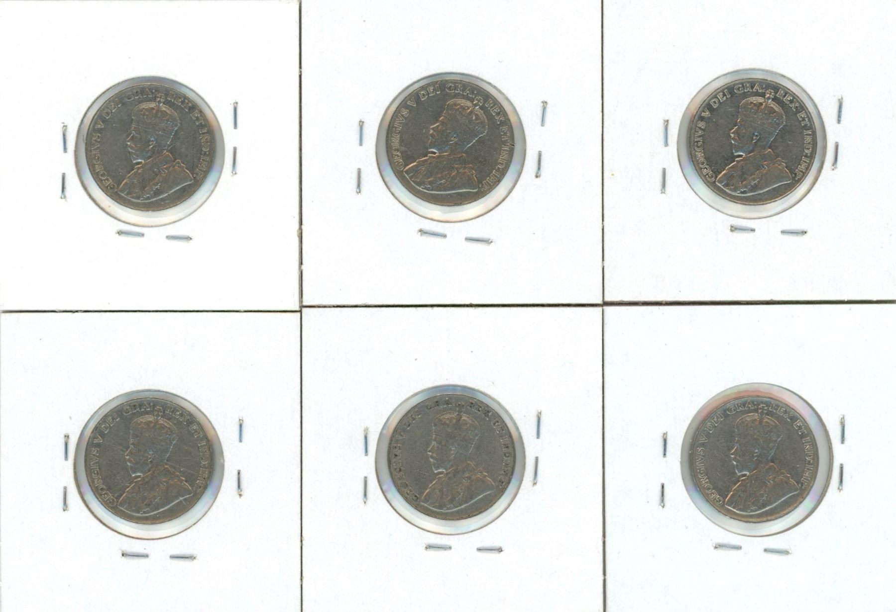 (6) George V Five Cent Coins 1932-1936 (2 Are Near Rim And 1 Is Far Rim)