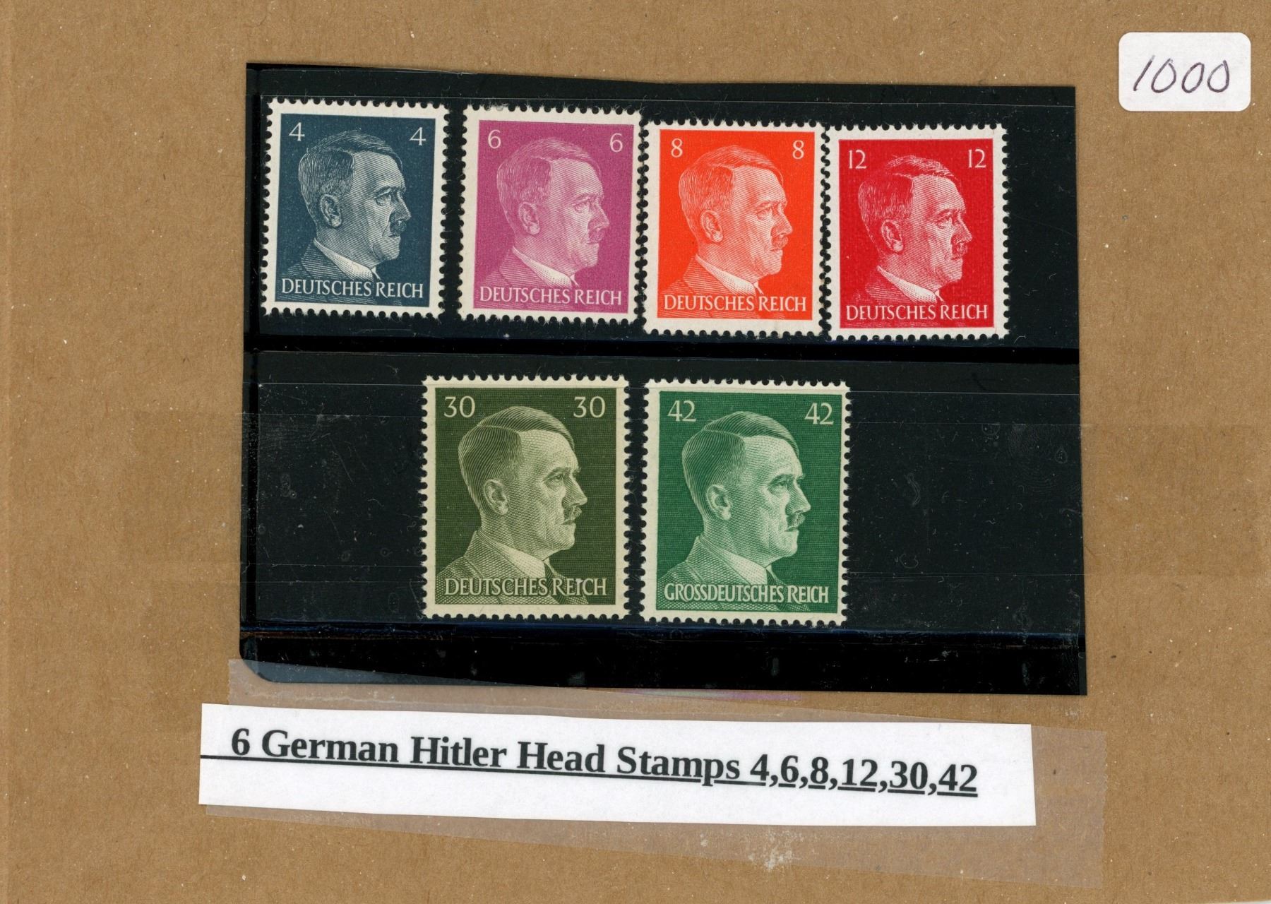 6 German Hitler Head Stamps 4, 6, 8, 12, 30, 42
