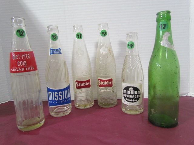 6 Glass Vintage Bottles-2 Stubby+ 3 Mission of California