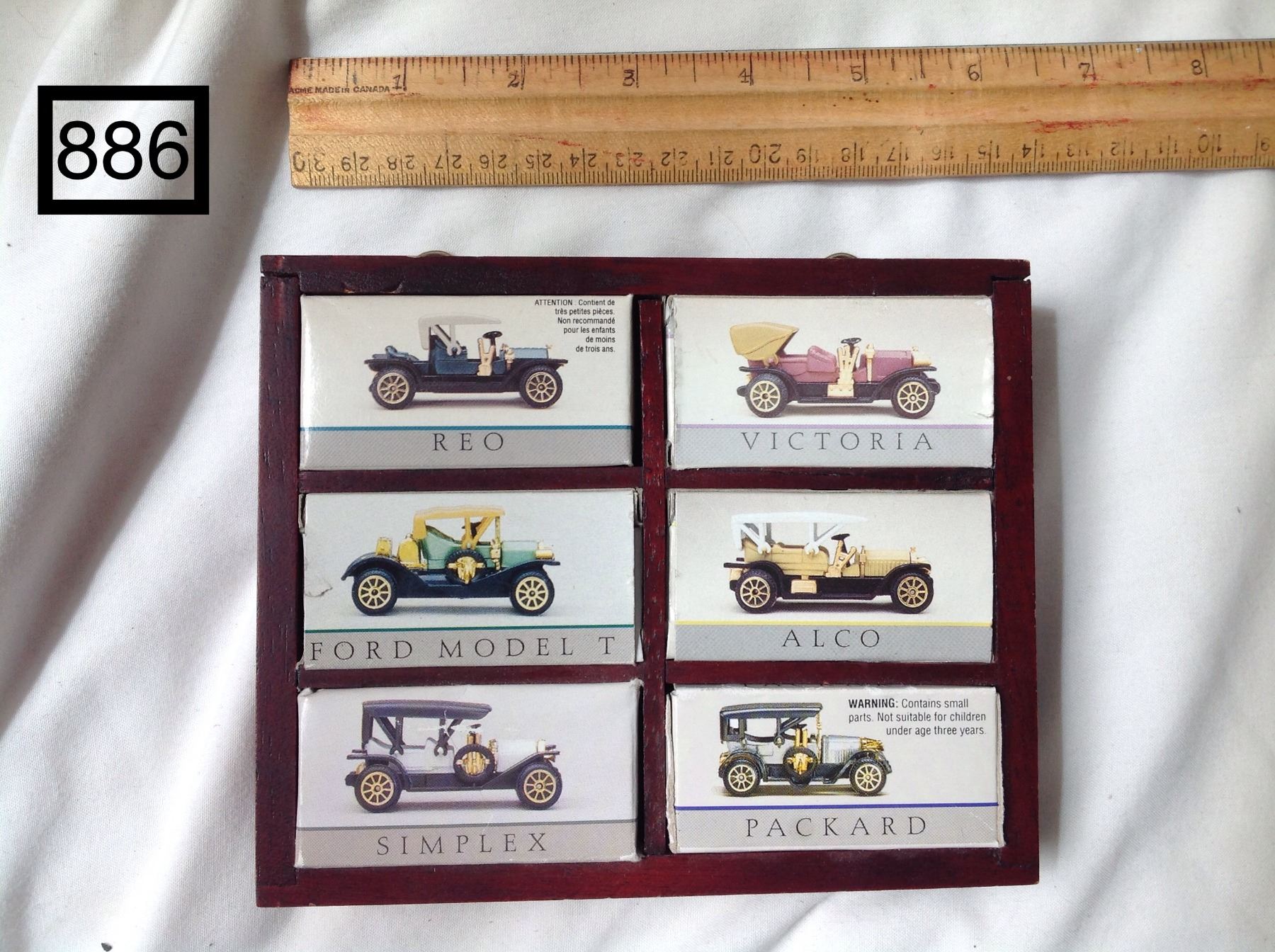 6 HIGH SPEED CARS IN BOXES AND WOODEN DISPLAY CASE