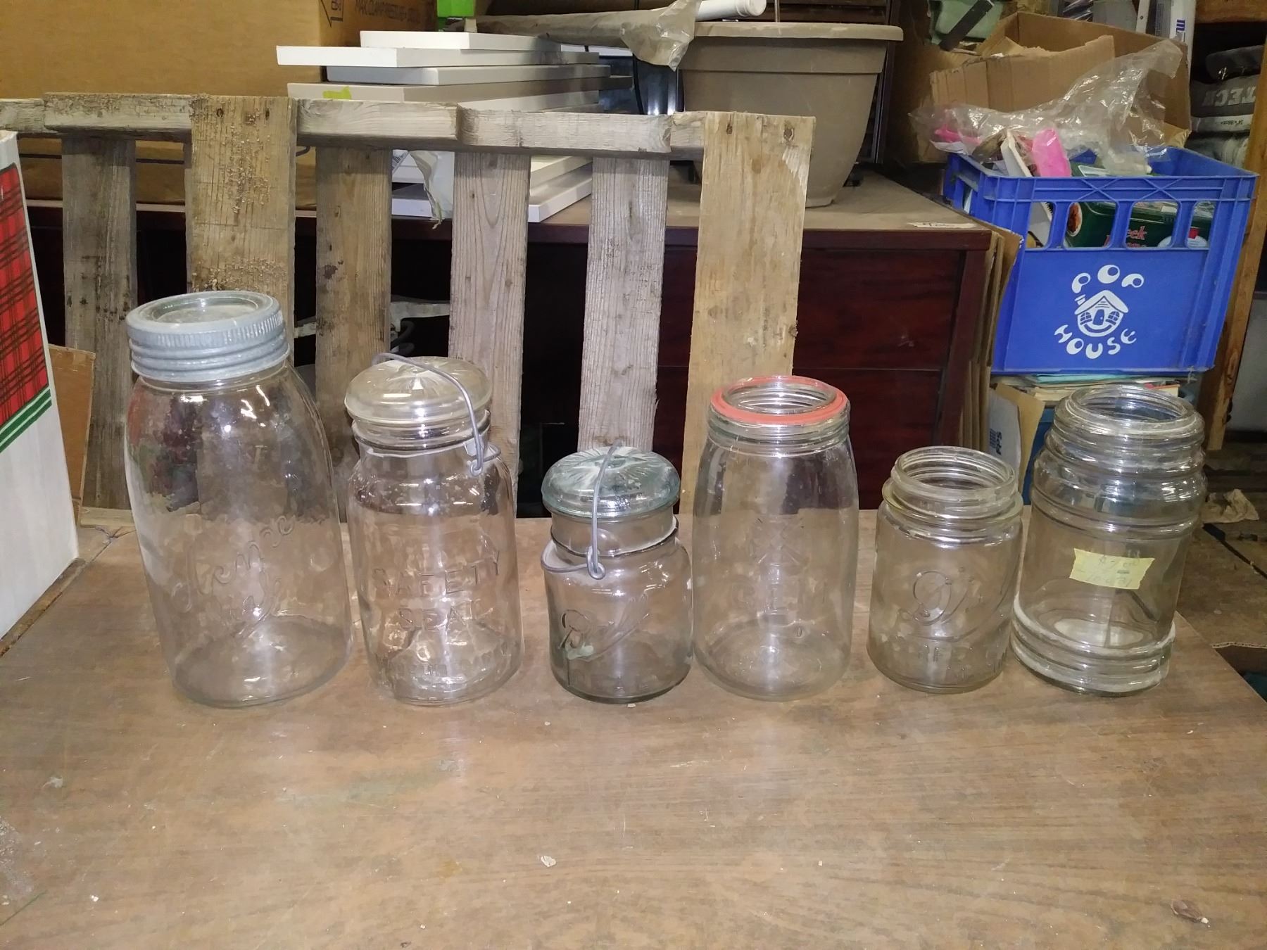 6 MASON JARS (DREY, BALL, ACME, GEM, ETC)