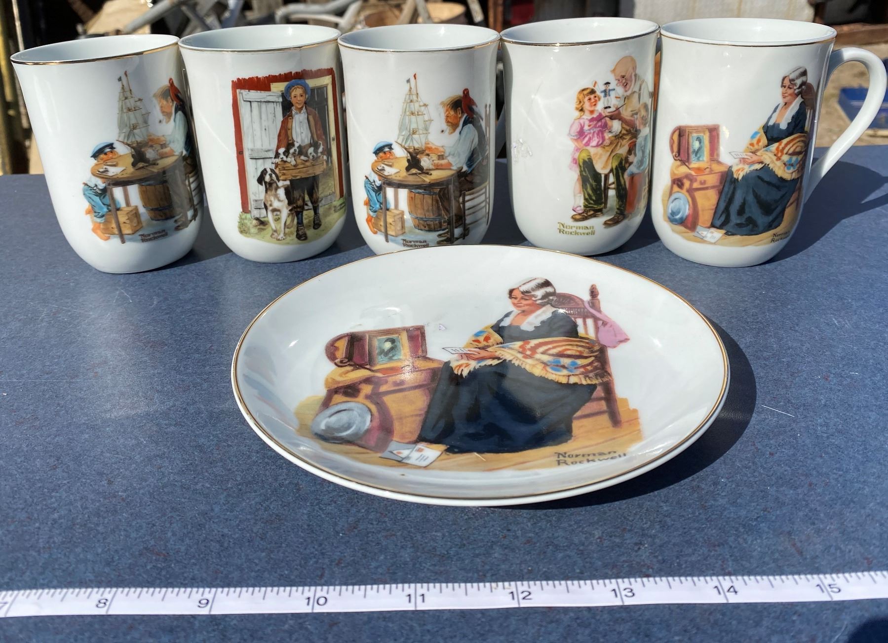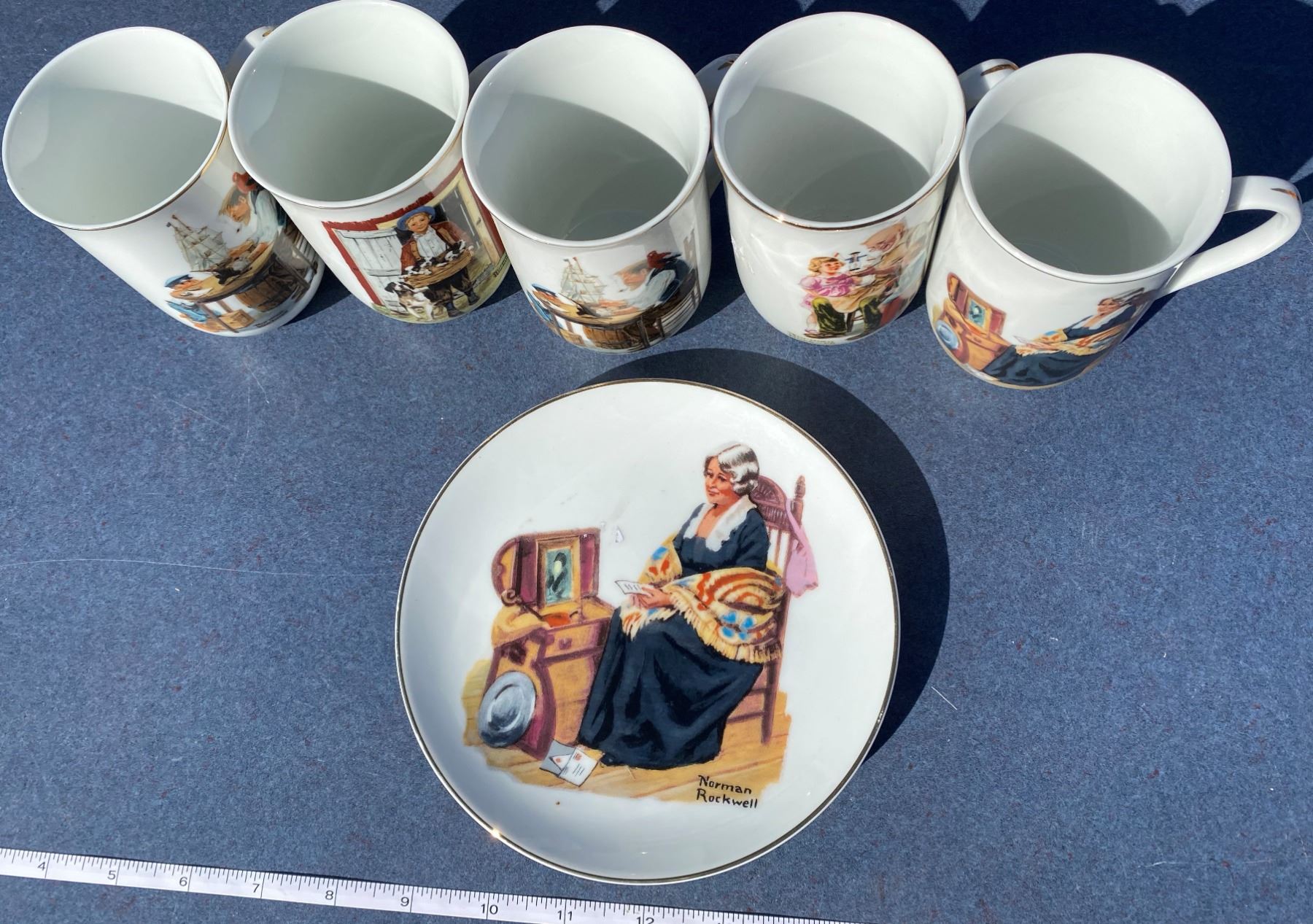 6 Norman Rockwell Pieces (5 Cups + 1 Plate)