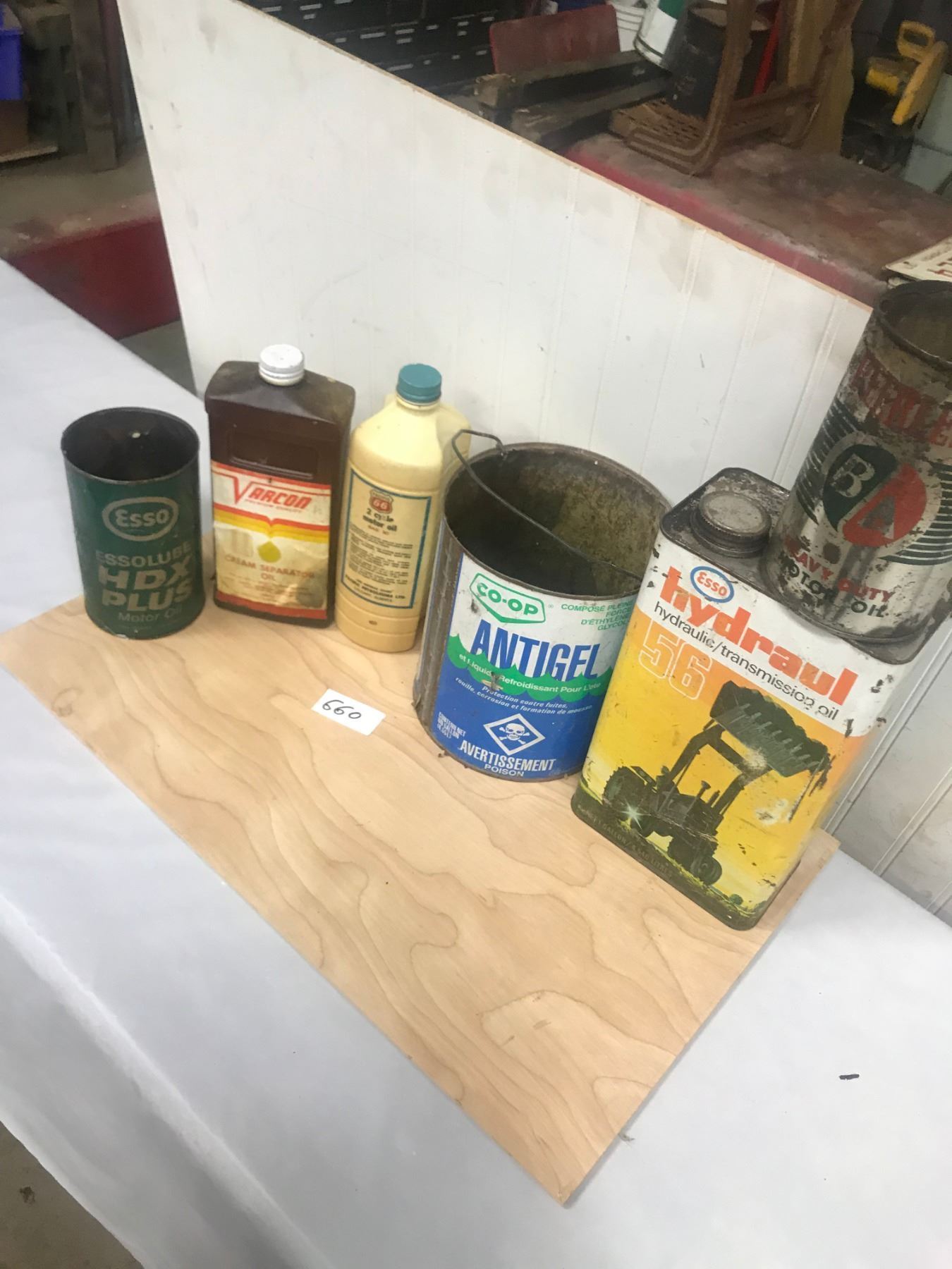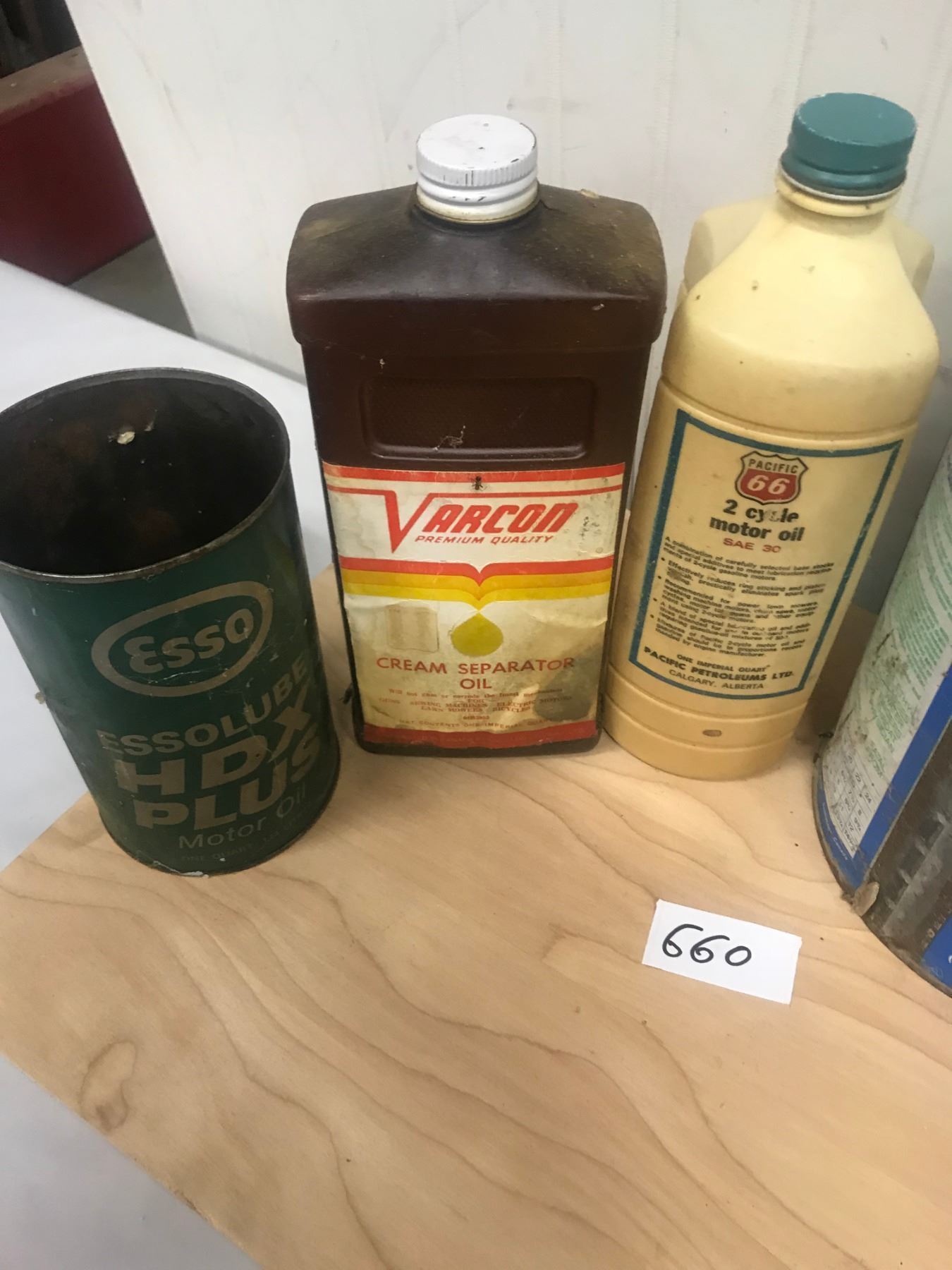 6 Oil Tins and bottles - Esso, B/A, Co-op, Pacific 66, etc.