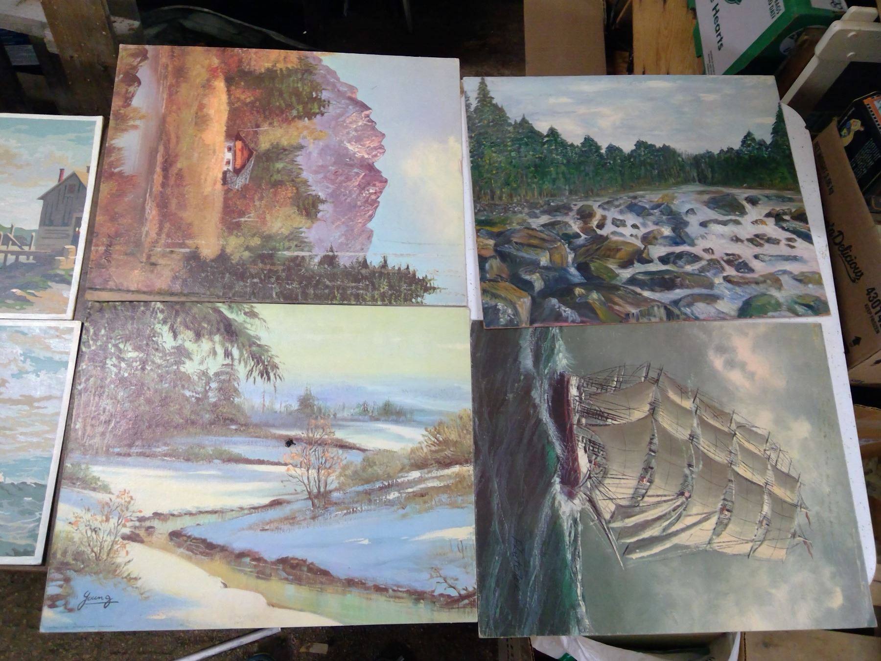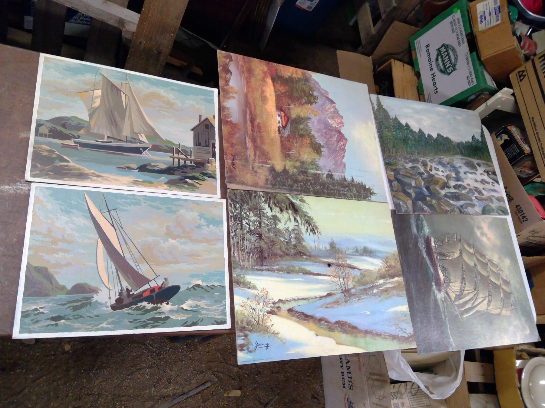 6 PICTURES, SOME HAND PAINTED