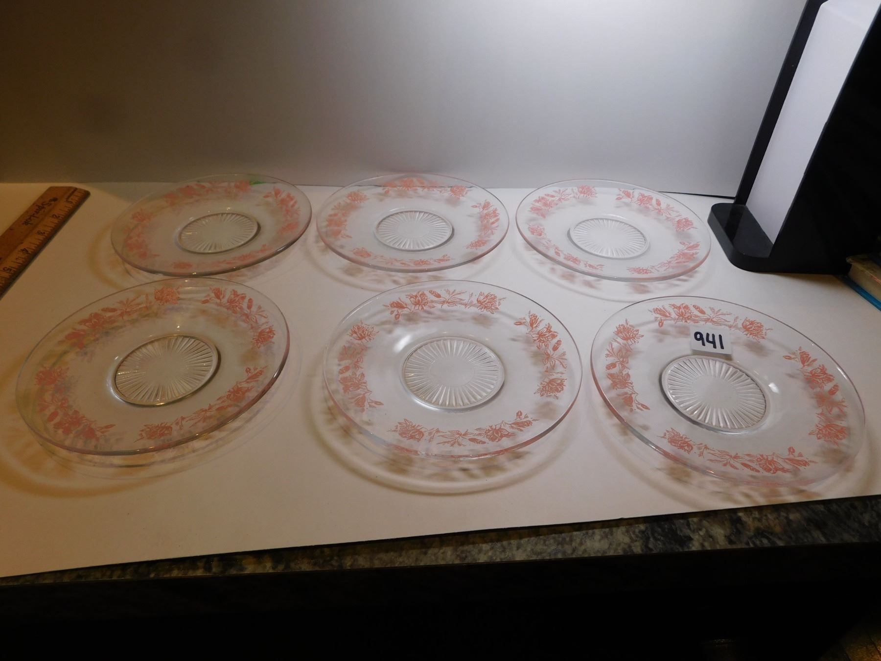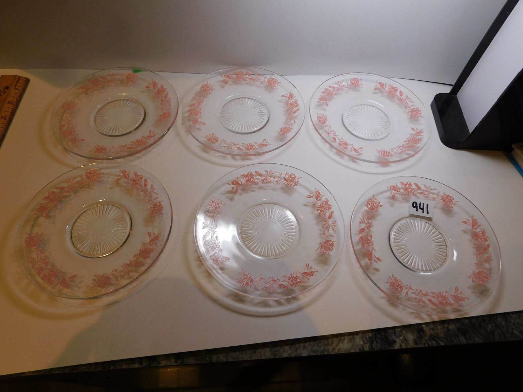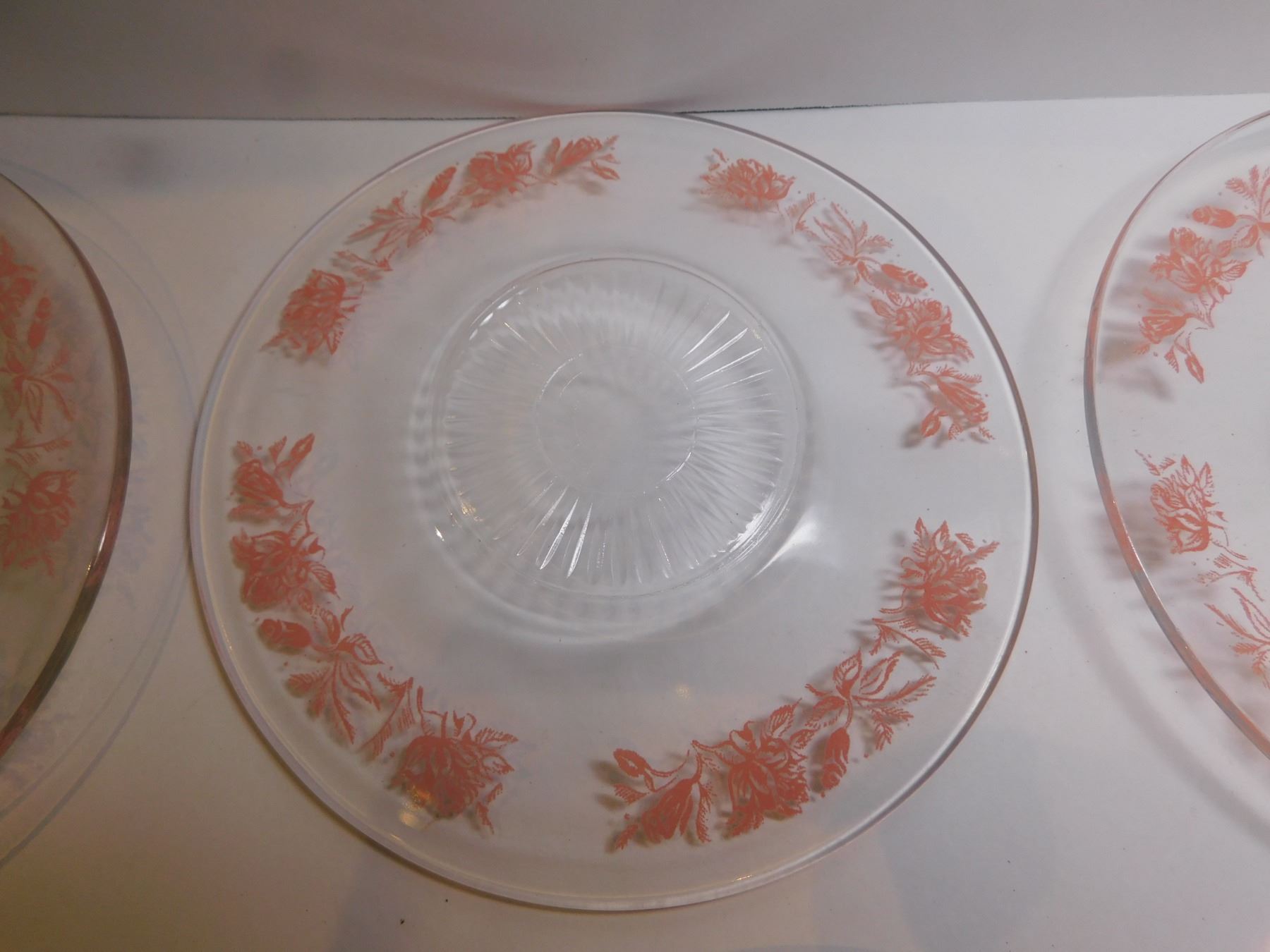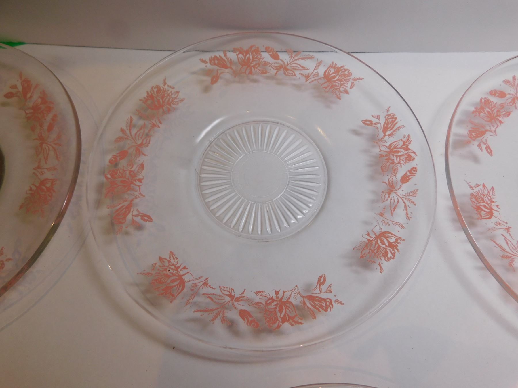 6-PINK FLORAL ANCHOR HOCKING DESSERT PLATES