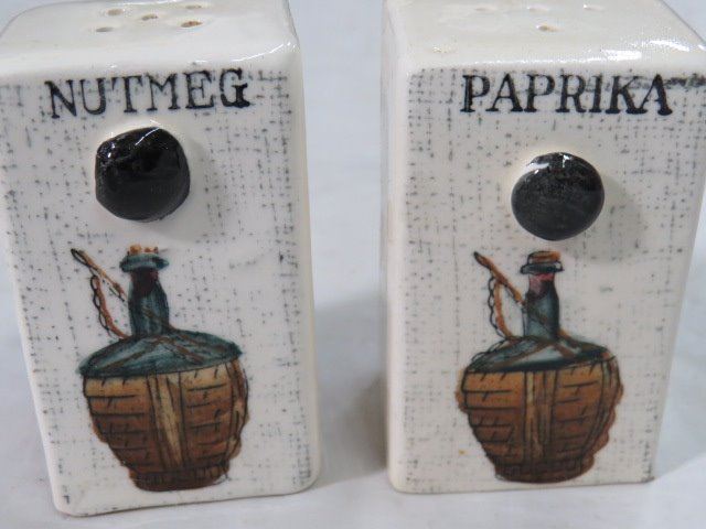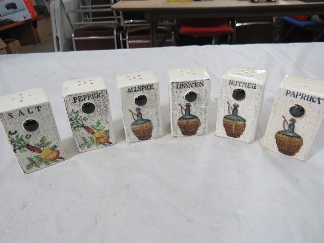 6 POTTERY SPICE CONTAINERS *3 ARE CRACKED*