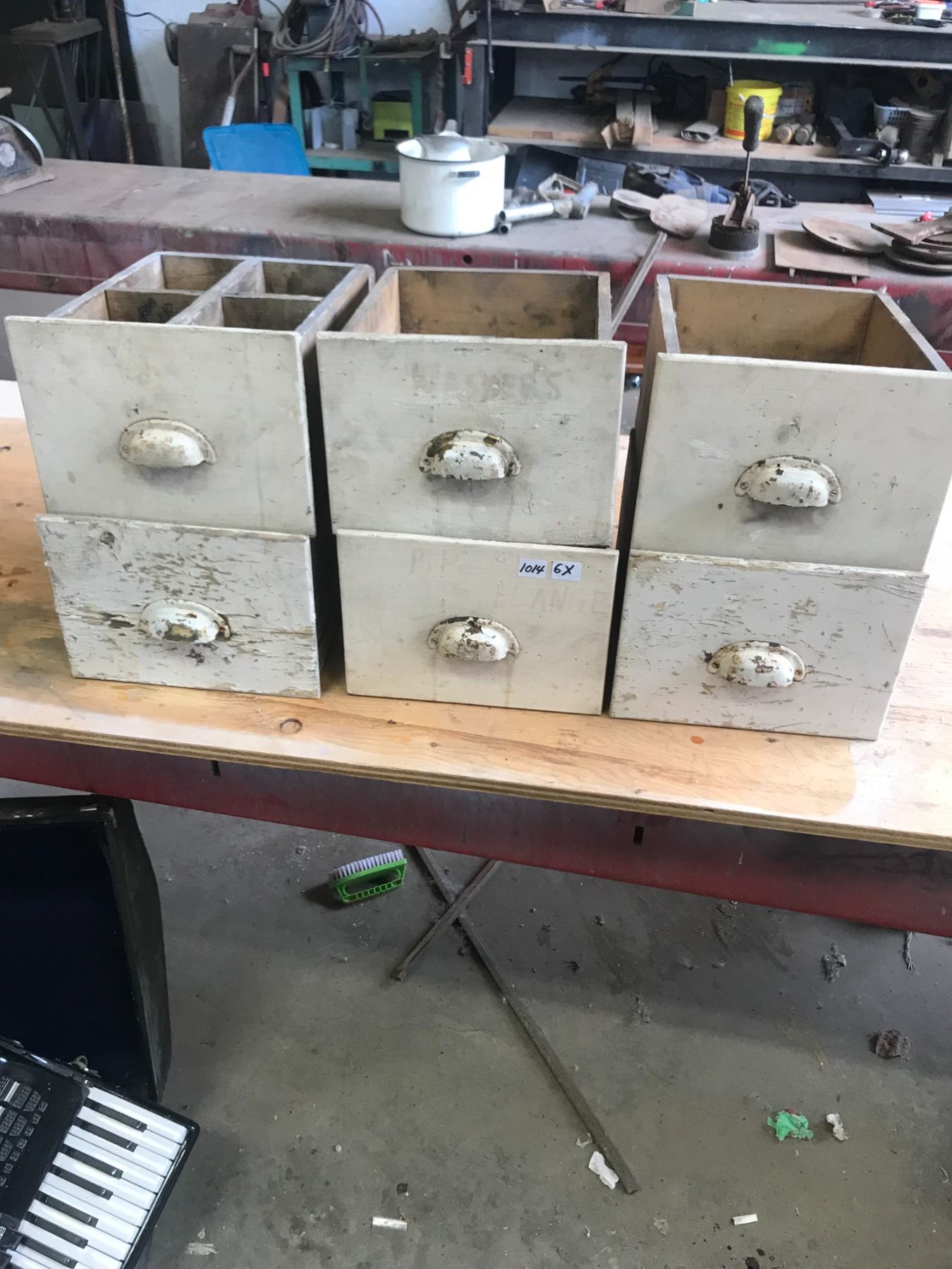 6 PRIMITIVE DRAWERS C/W CUP HANDLES (7 1/2" X 10" FRONTS) - RIGHT OUT OF THE SHOP