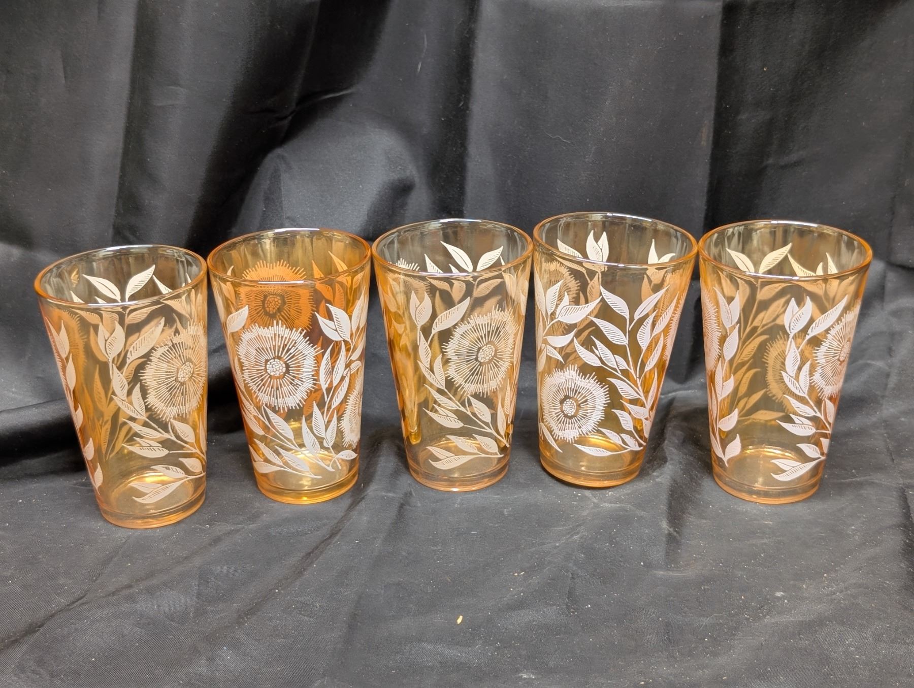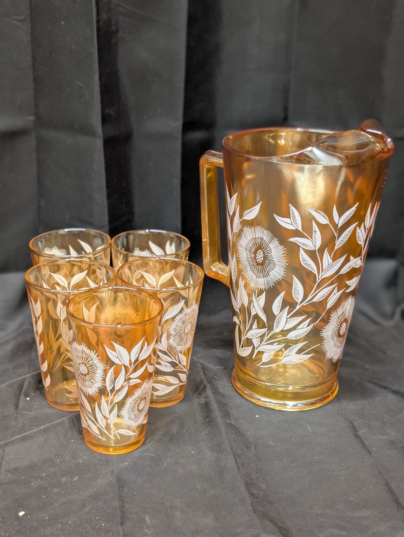 6 Piece Depression Glass water set (5) Glasses (1) Pitcher