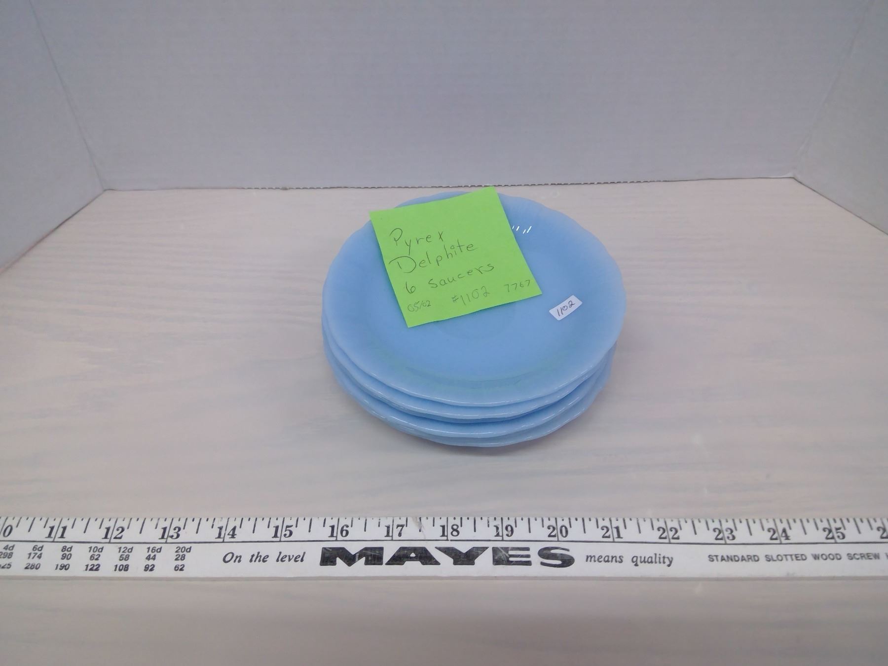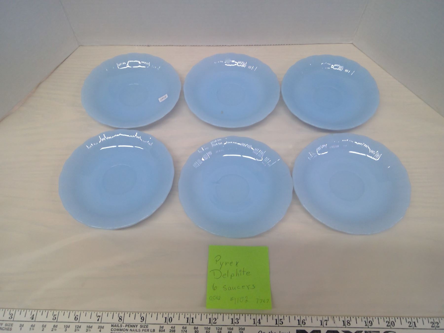 6 Pyrex Saucers, Baby Blue Delphite 6"