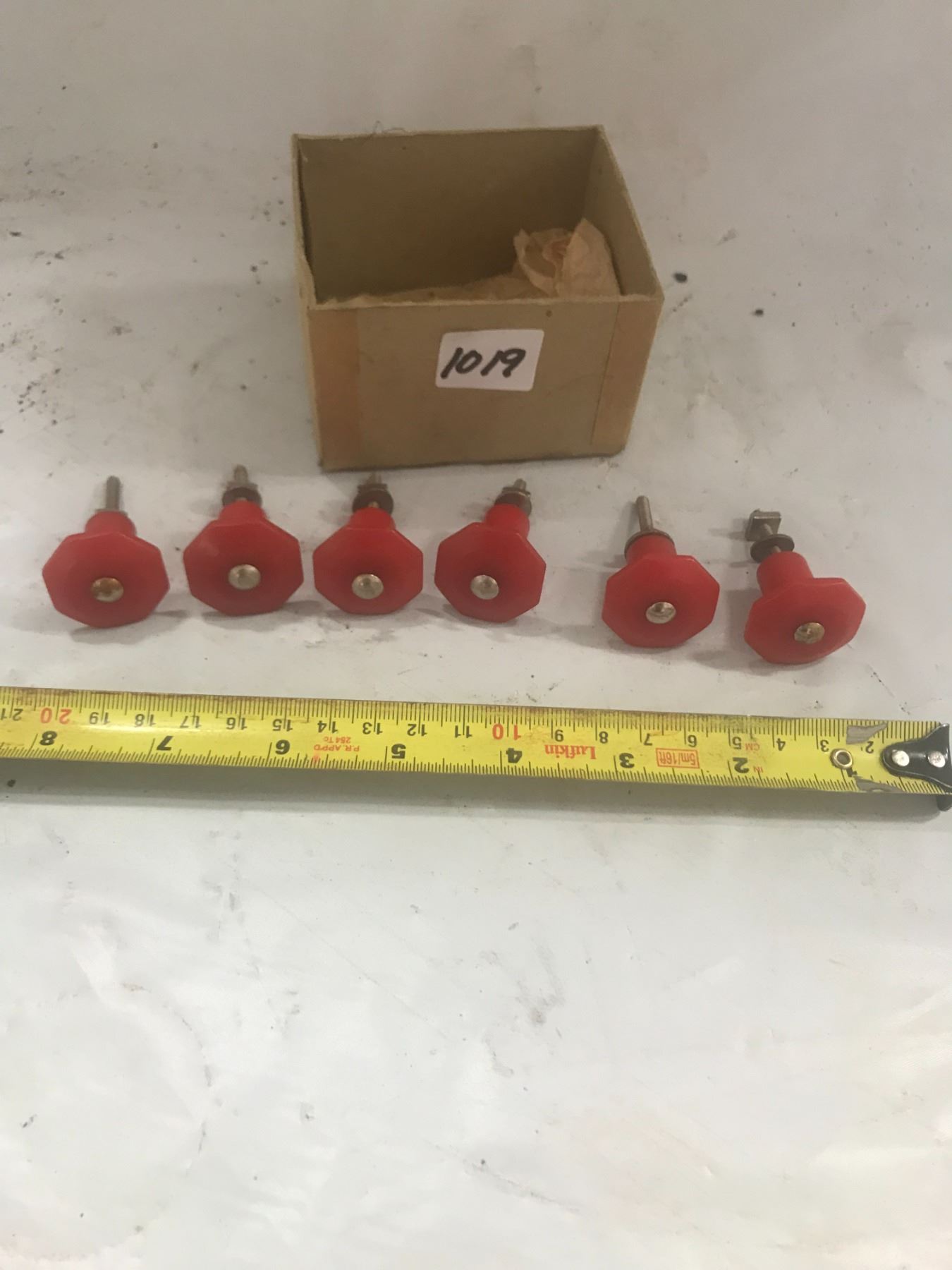 6 RED PLASTIC KNOBS - NEW OLD STOCK - VINTAGE
