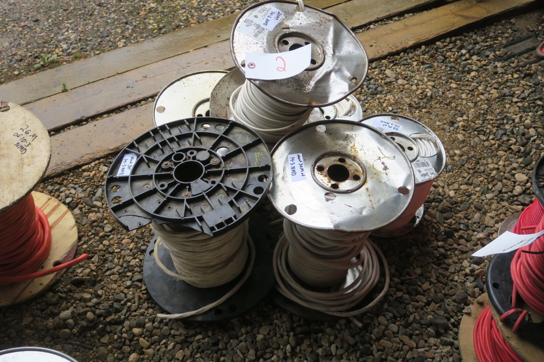 6 Rolls of NMD Wire: 14-3 (50ft & 90ft), 14-2 (75ft, 225ft, 225ft, 450ft) - Lengths Are Approximate