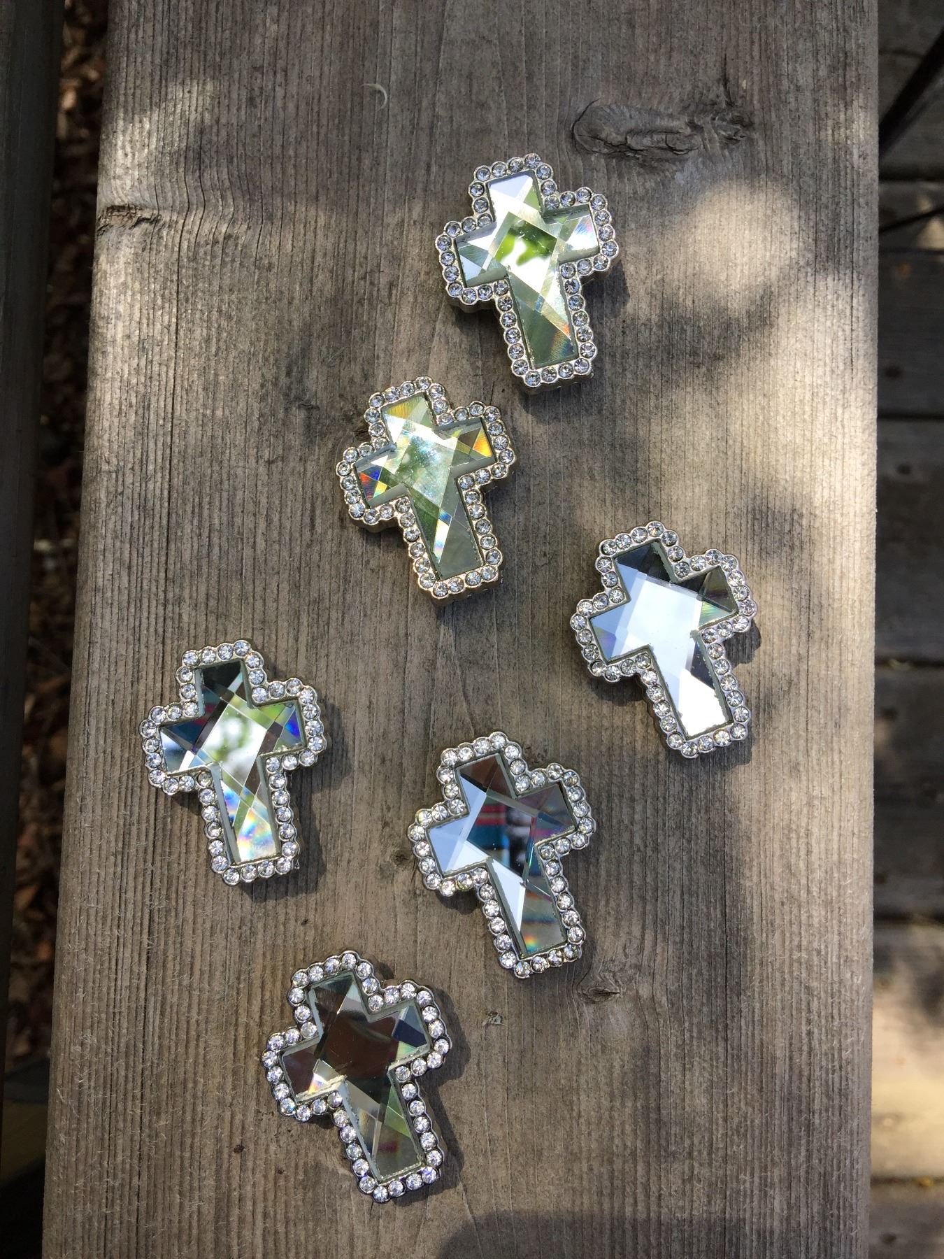6 SILVER CROSS CONCHOS/ CLEAR T CRYSTALS / 1 1/4"*CHICAGO SCREWS INCLUDED