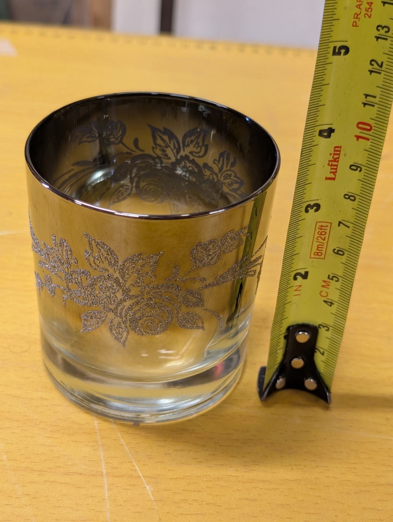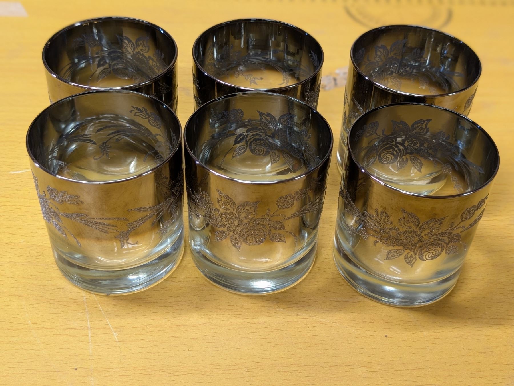 (6) Vintage MCM Vitreon Queens Lusterware Black Chrome Ombre Glasses