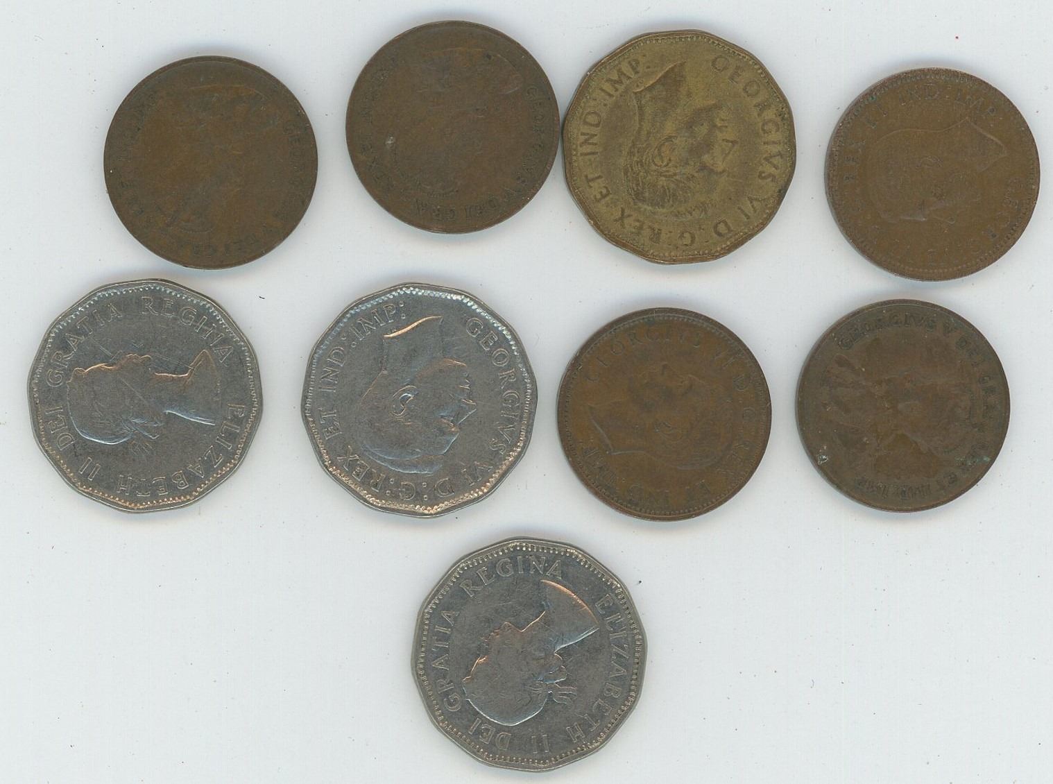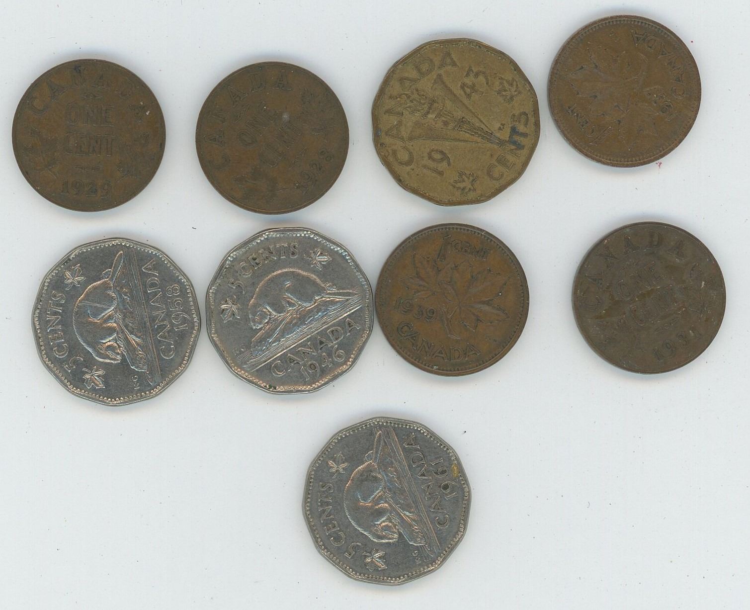 6 X Various Canadian One Cent Coins & 3 X Canadian 5 Cent Coins