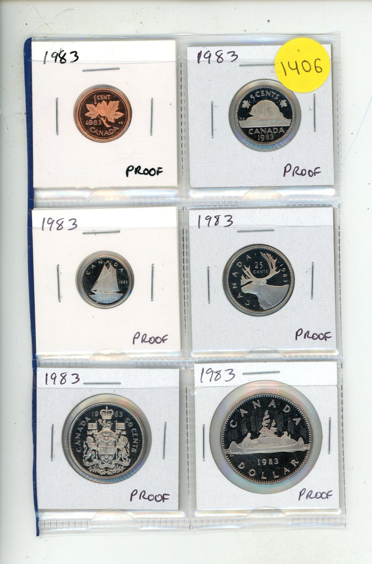 6-coin 1983 Proof Set from Cent to Nickel Dollar. All coins have Ultra Heavy Cameos.