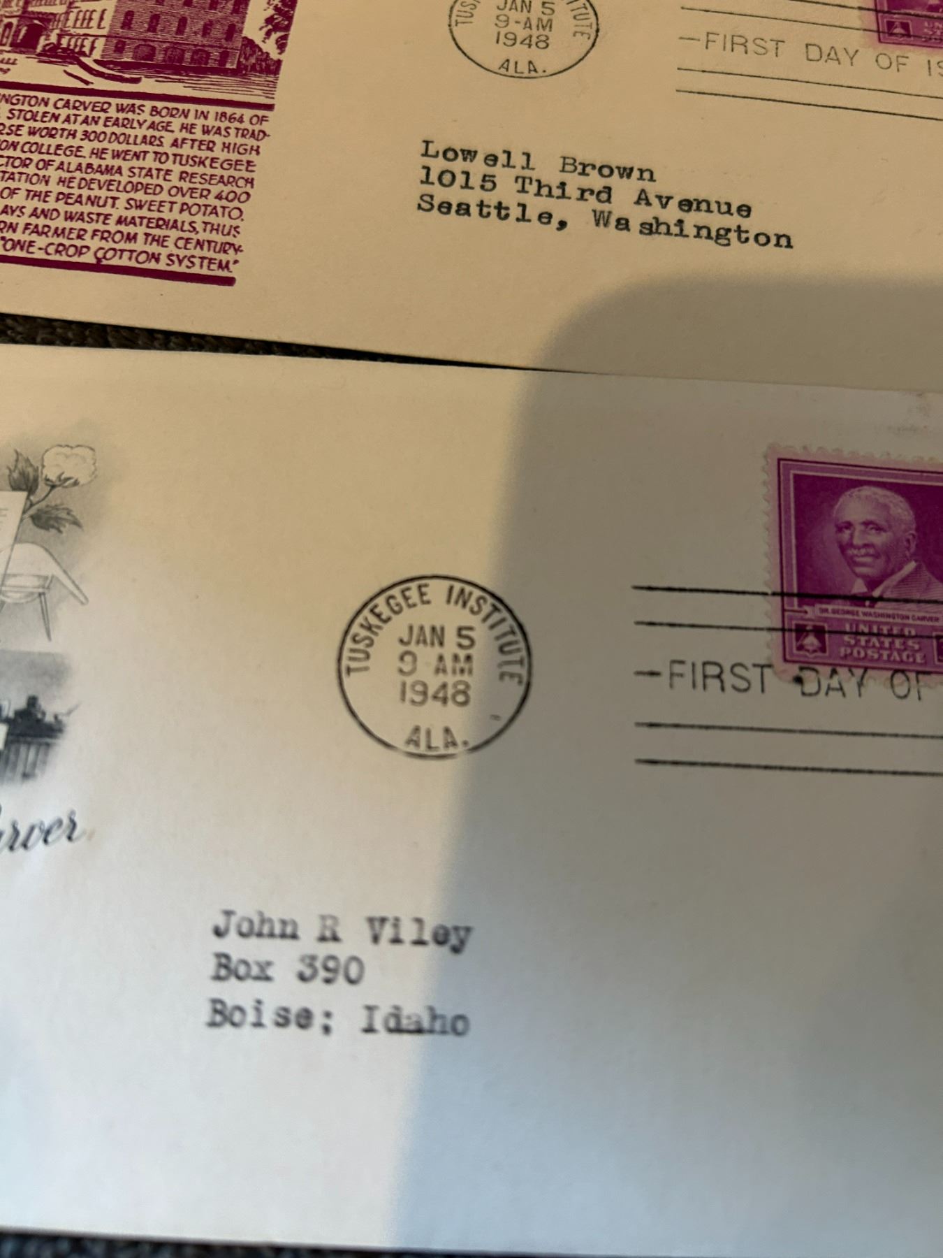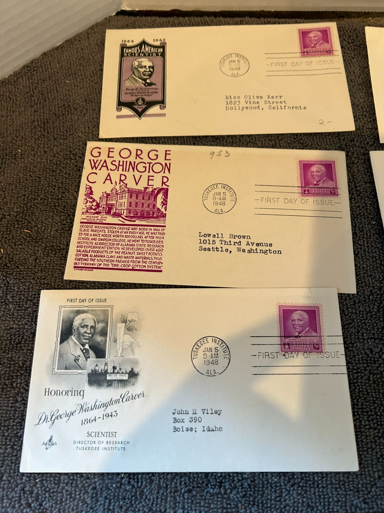 6 envelopes prominent black americana envelopes first day of issue 1940's+ 1960's