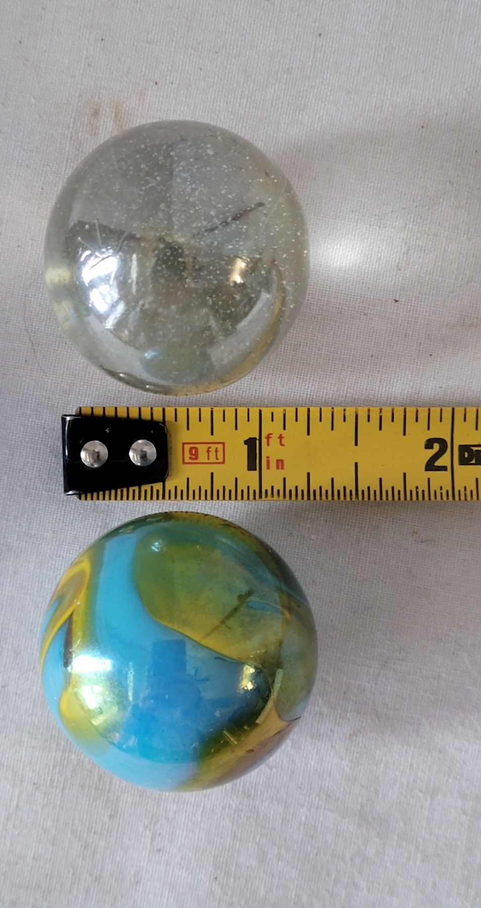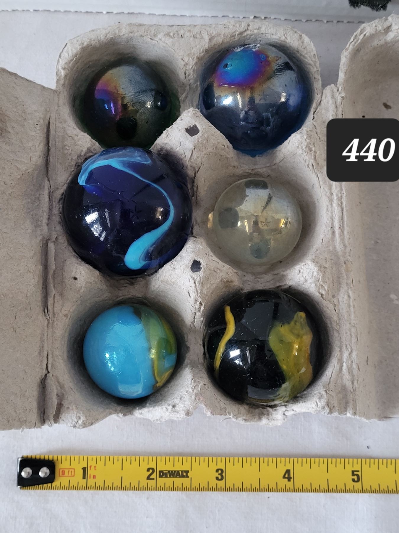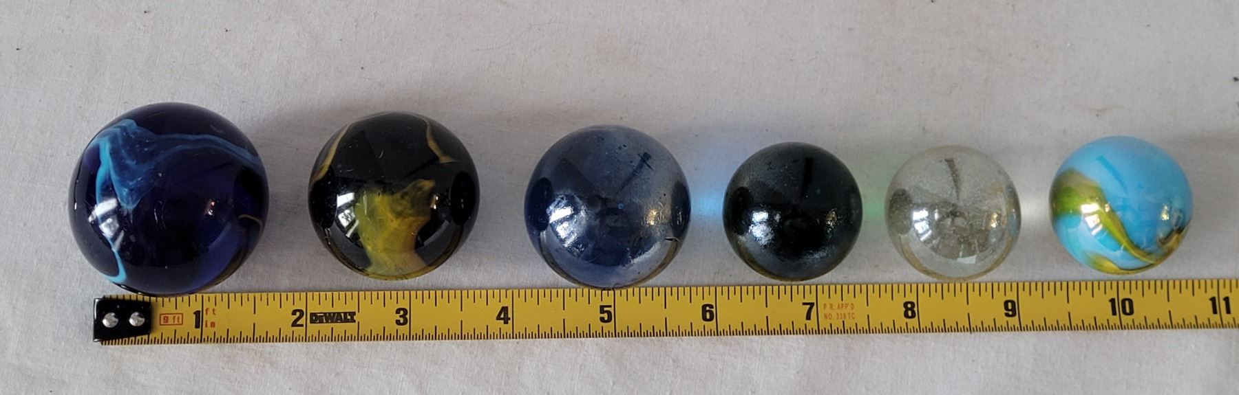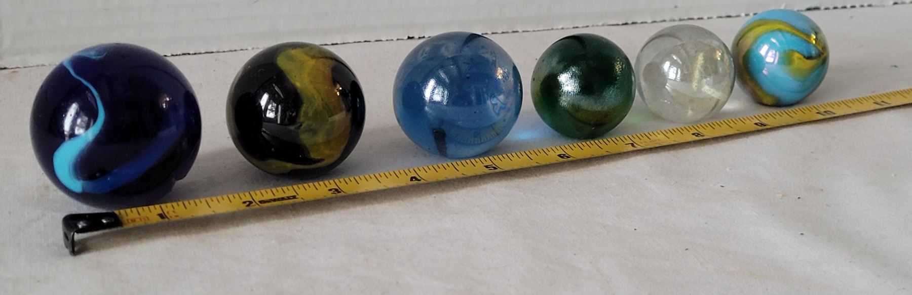 6 extra large marbles. Largest is Approx. 2” diameter.