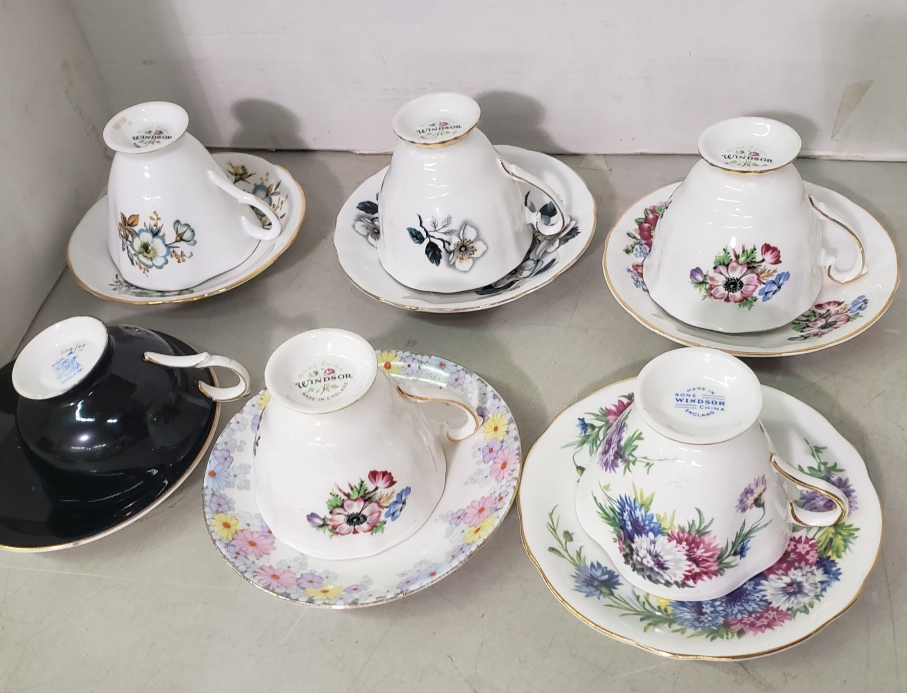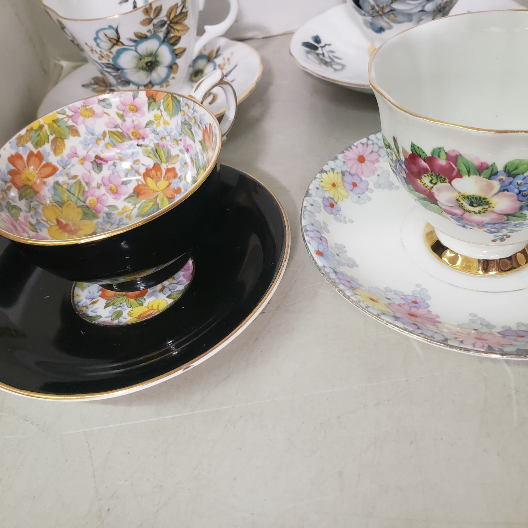 6 fine china teacups with matching saucers