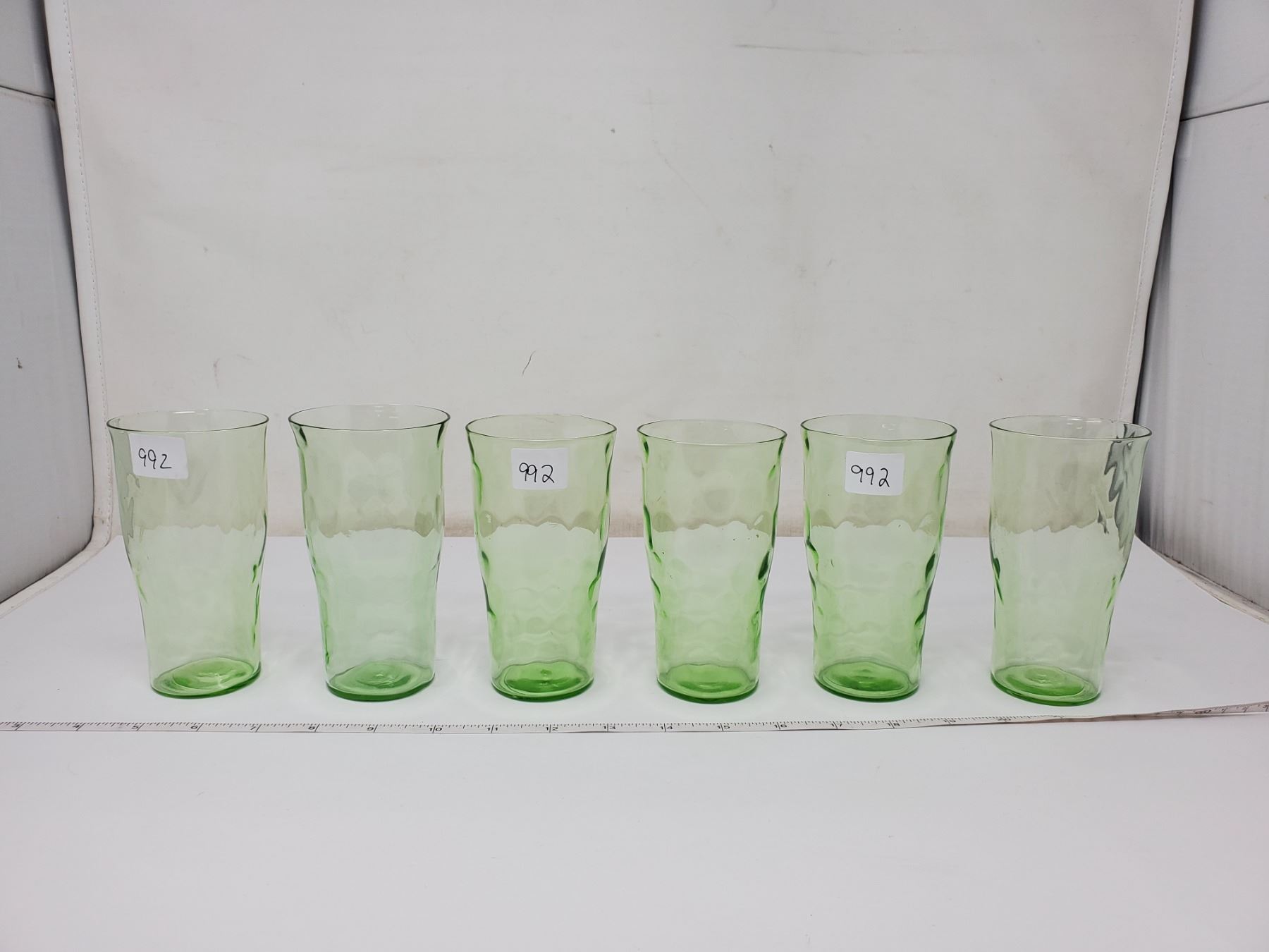 6 green depression glass glasses