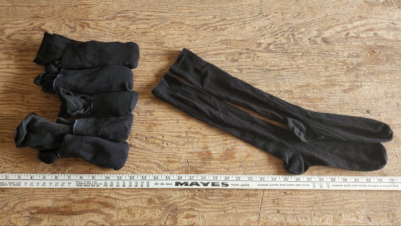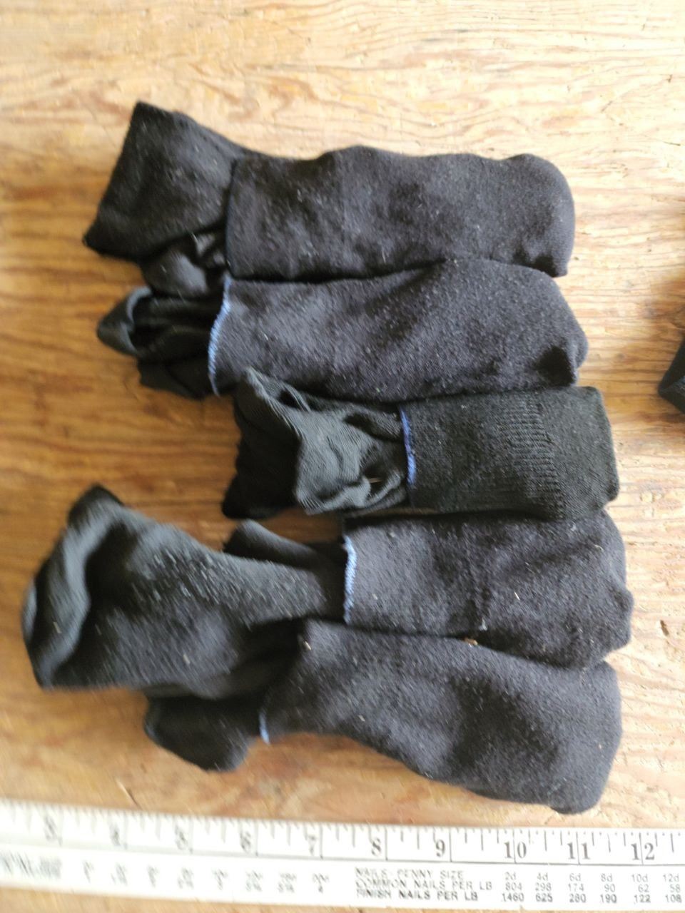 6 pairs of black Mens crew socks, blue trim