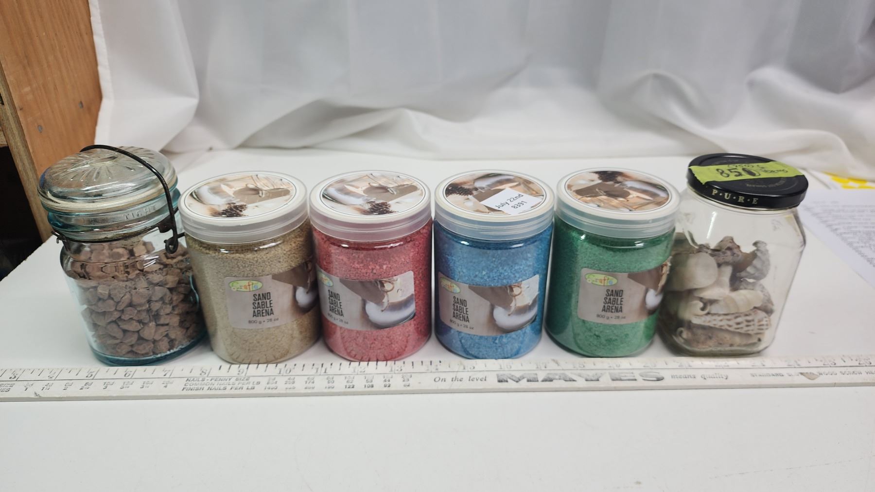 6 pc rock garden/yard/planter art set - colored sands, stones and shells
