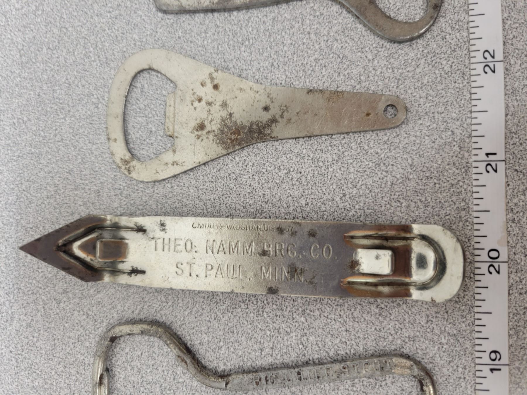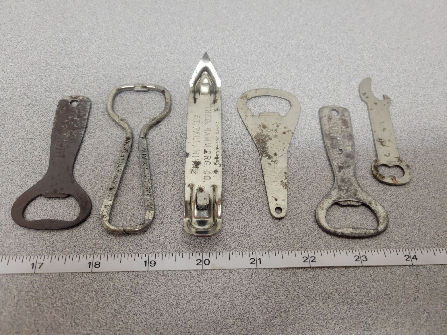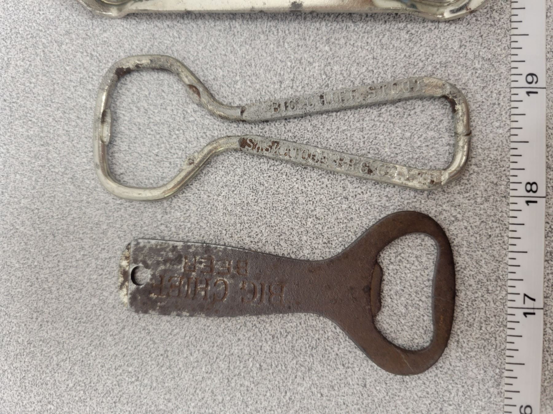 6 vintage bottle openers - 4 'Big Chief' 1 Hamms Beer - 1 Alberta Brewery