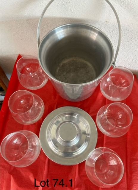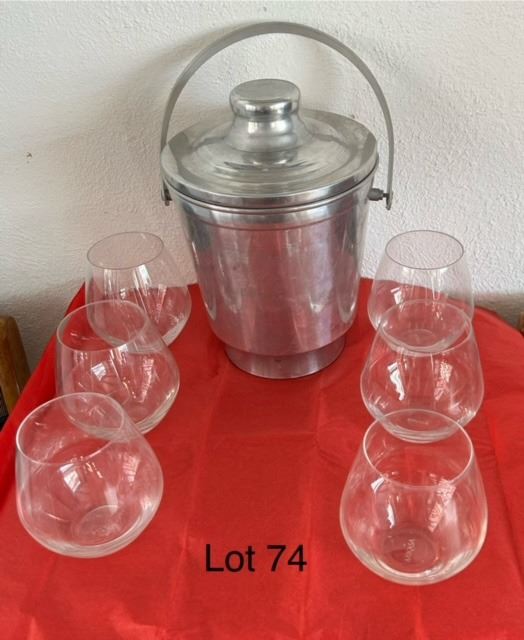 6 wine glasses and 1 very old ice bucket