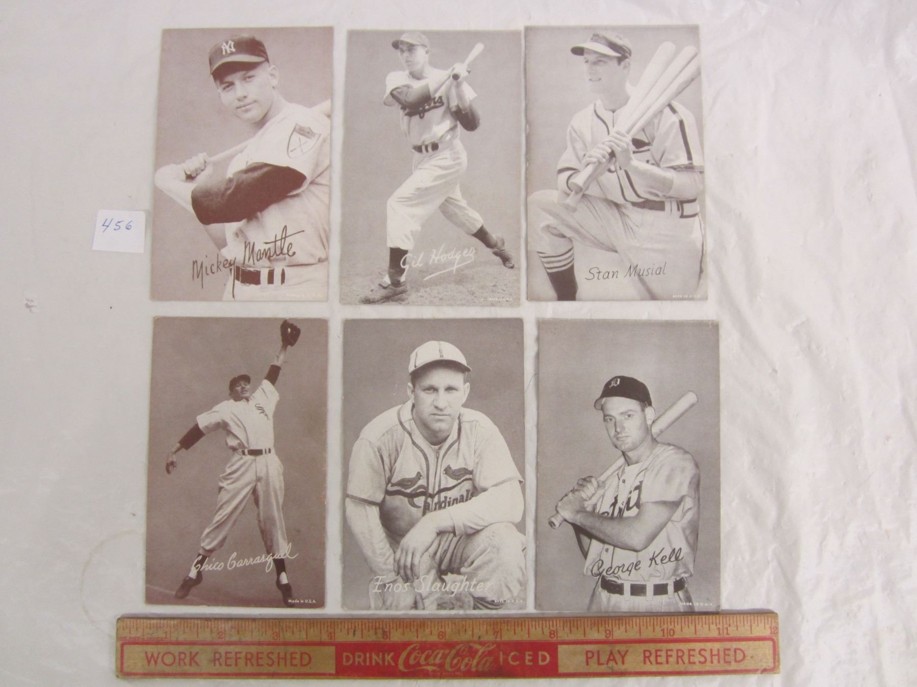 6 x 1950's Baseball Cards Mickey Mantle, Stan Musial ect 3 3/8 x 5 1/4 inches