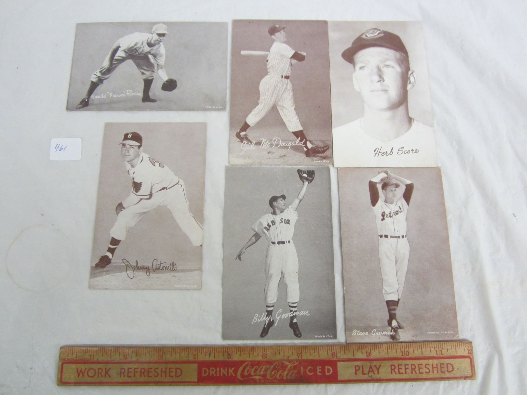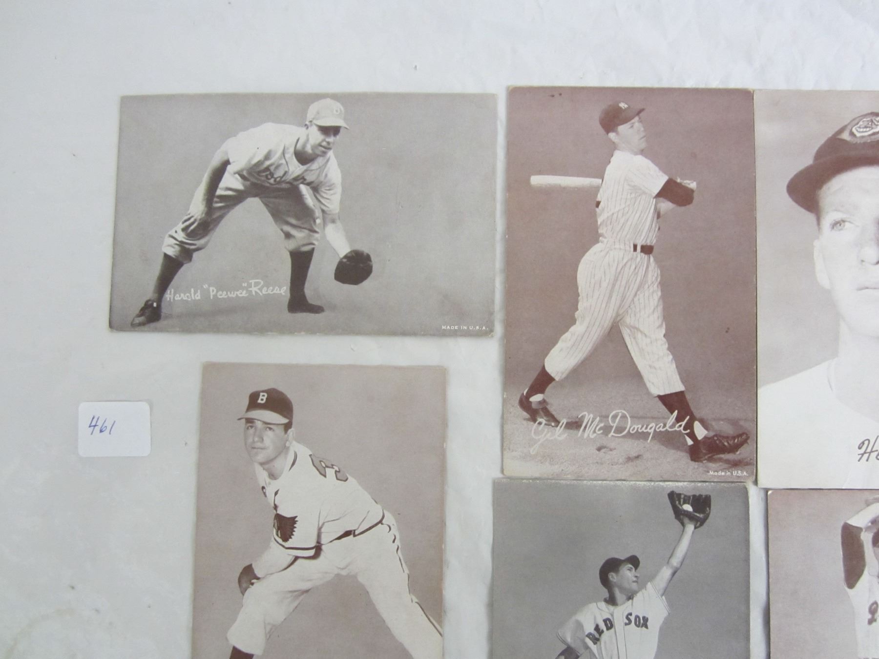 6 x 1950's Baseball Cards Peewee Reese ect. 3 3/8 x 5 1/4 inches