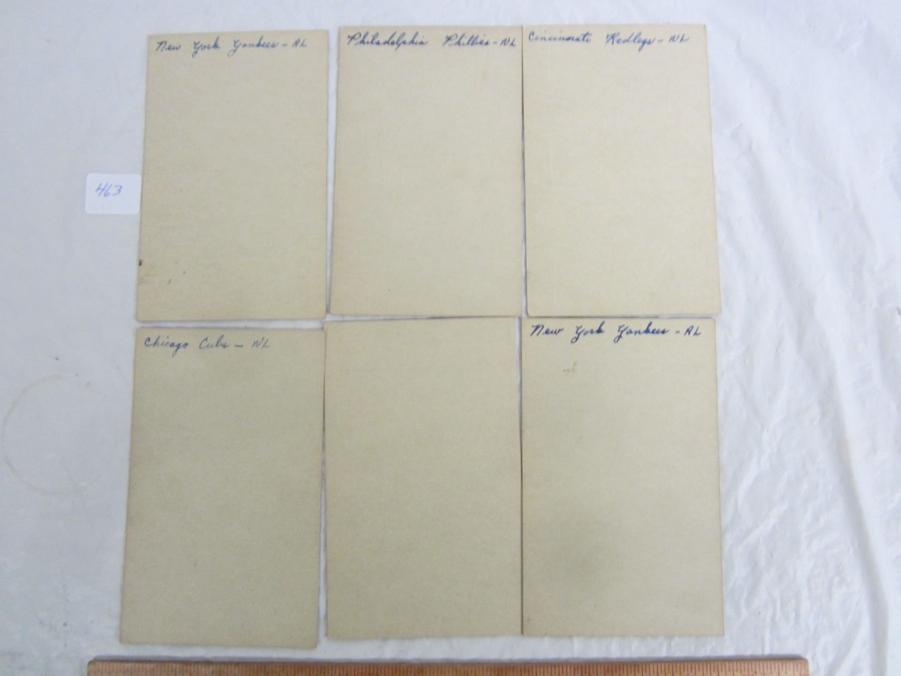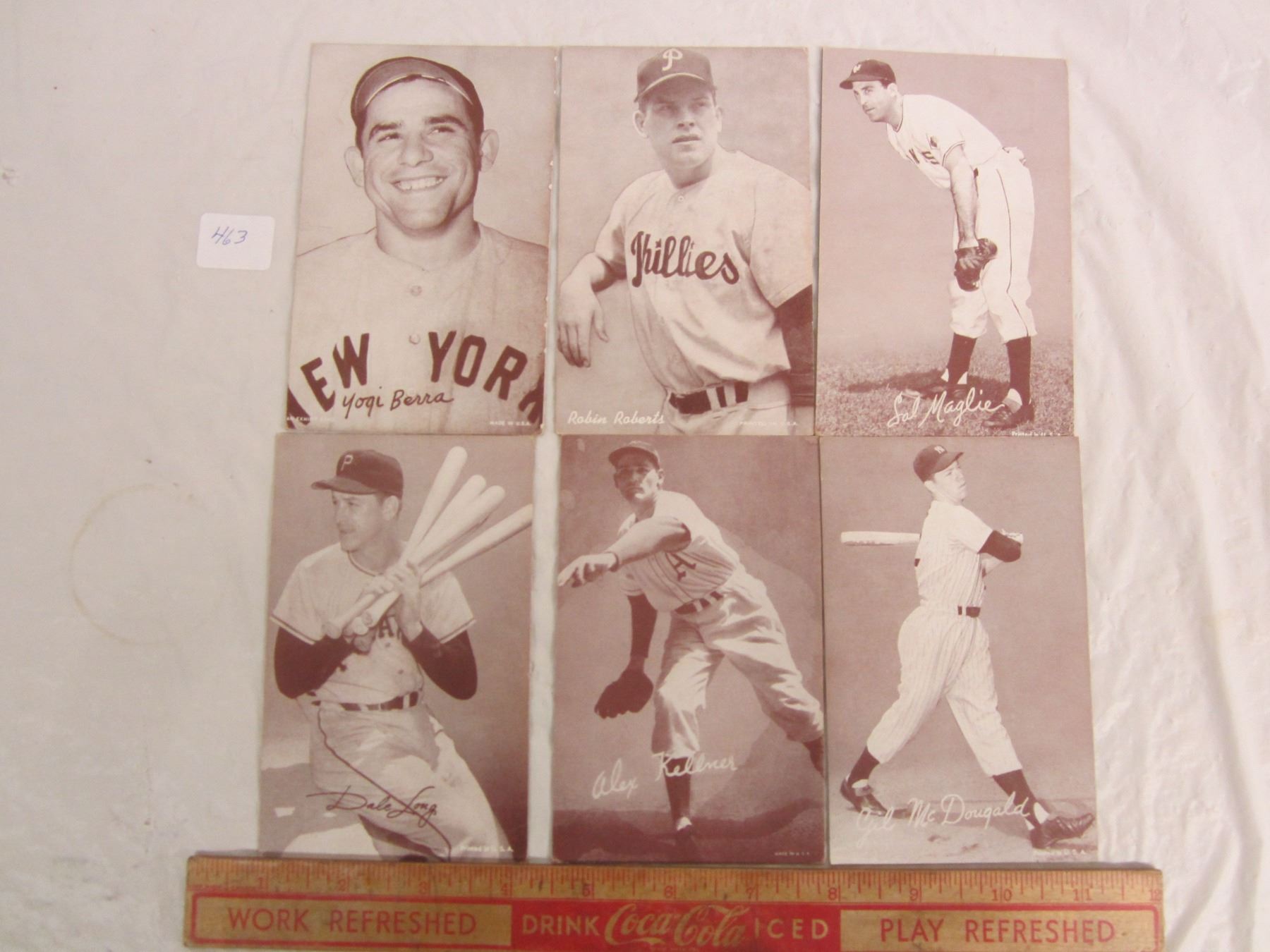 6 x 1950's Baseball Cards Yogi Beria ect 3 3/8 x 5 1/4 inches
