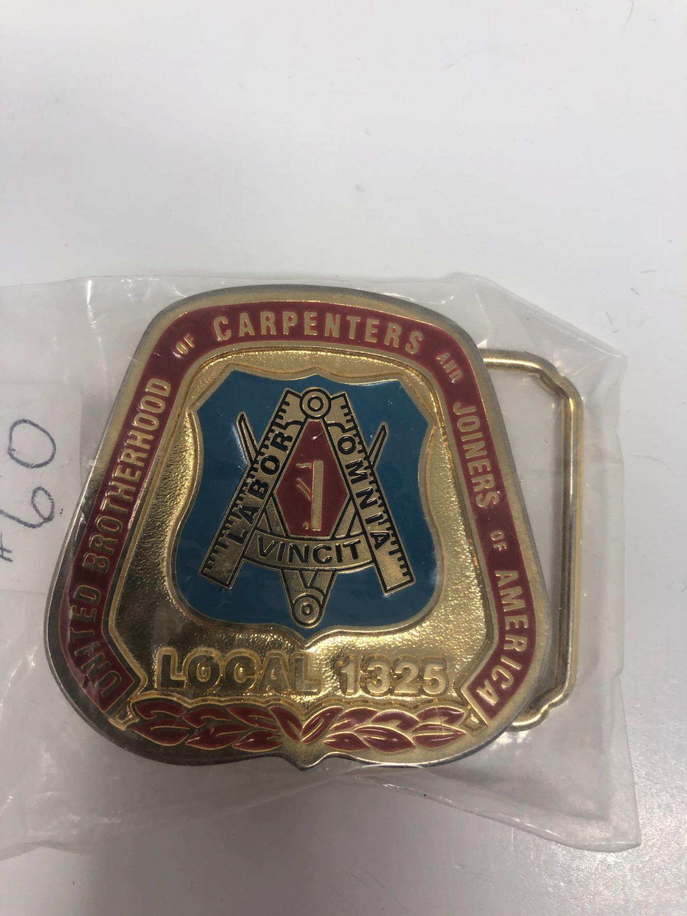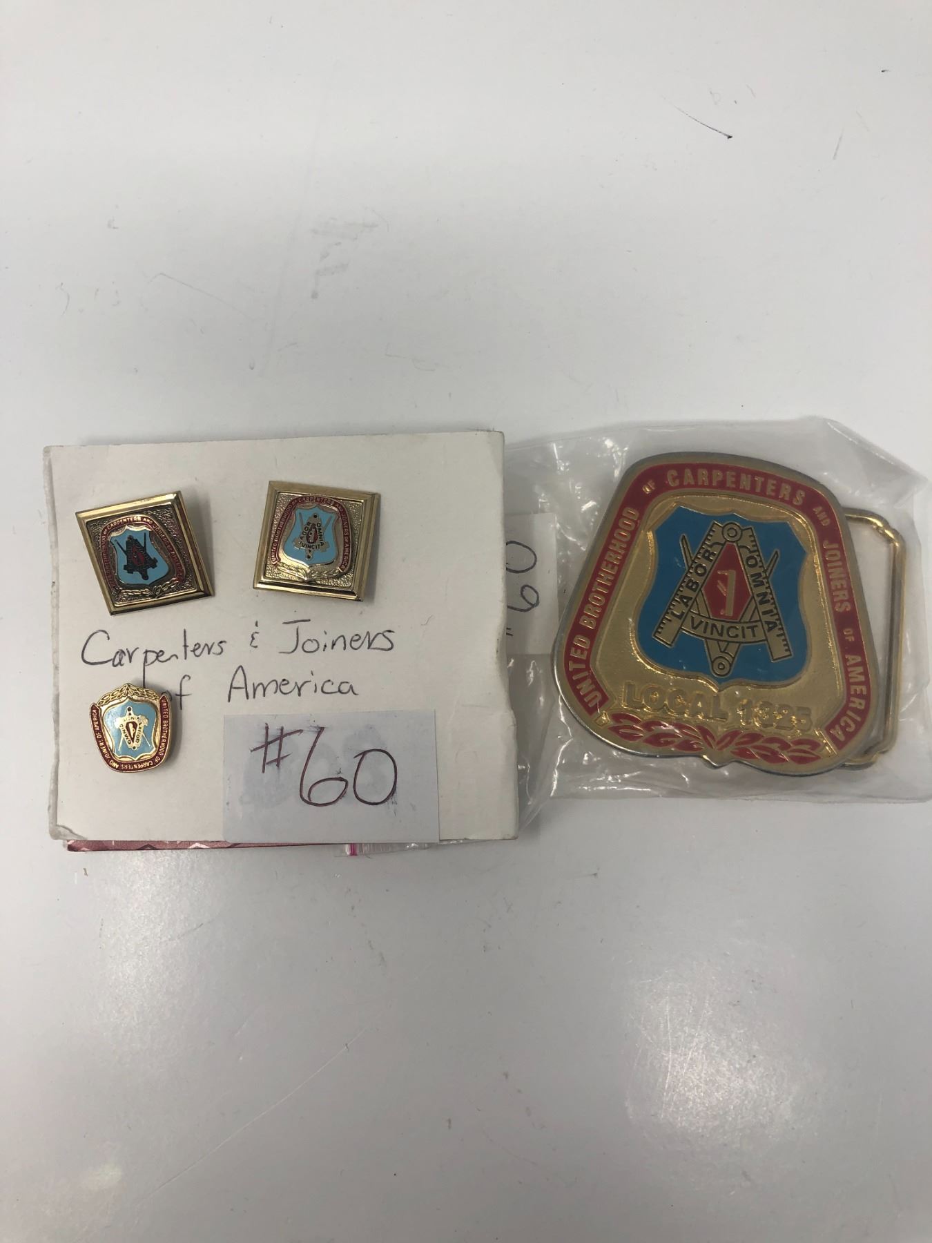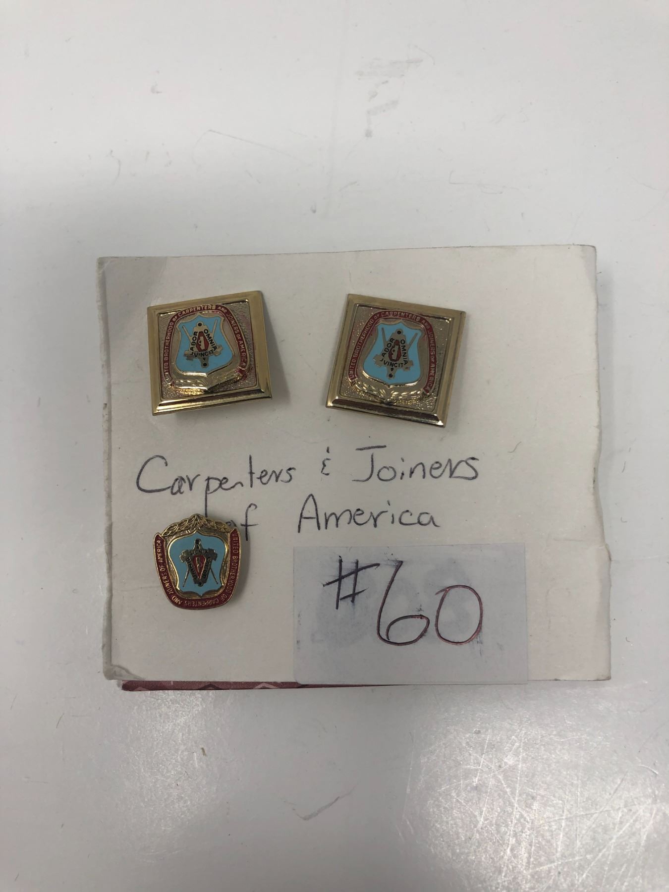 60. Buckle, cufflinks, lapel pin, “Carpenters and Joiners of America”