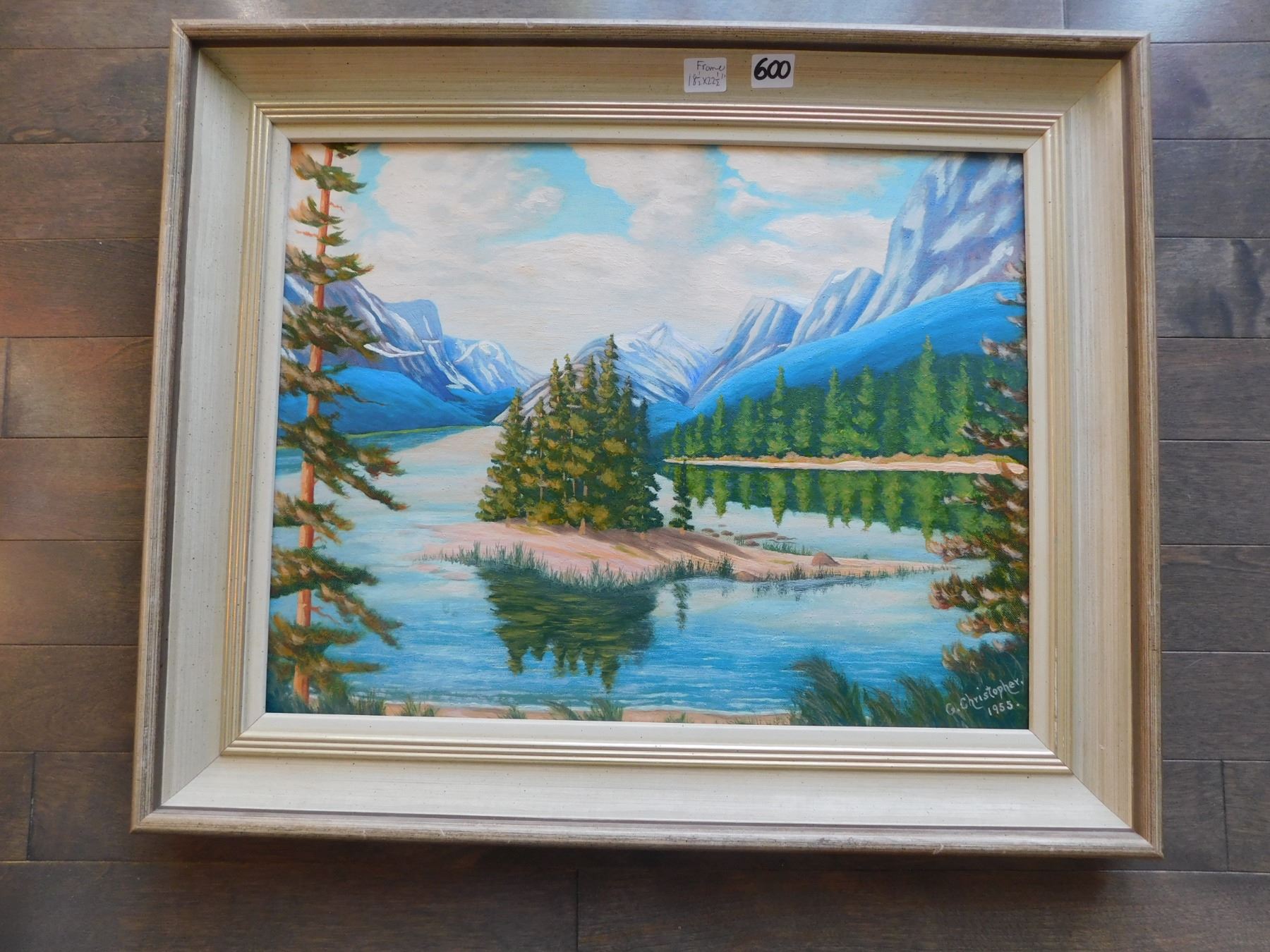 600. 1955, G CHRISTOPHER PAINTING, MORRAINE LAKE