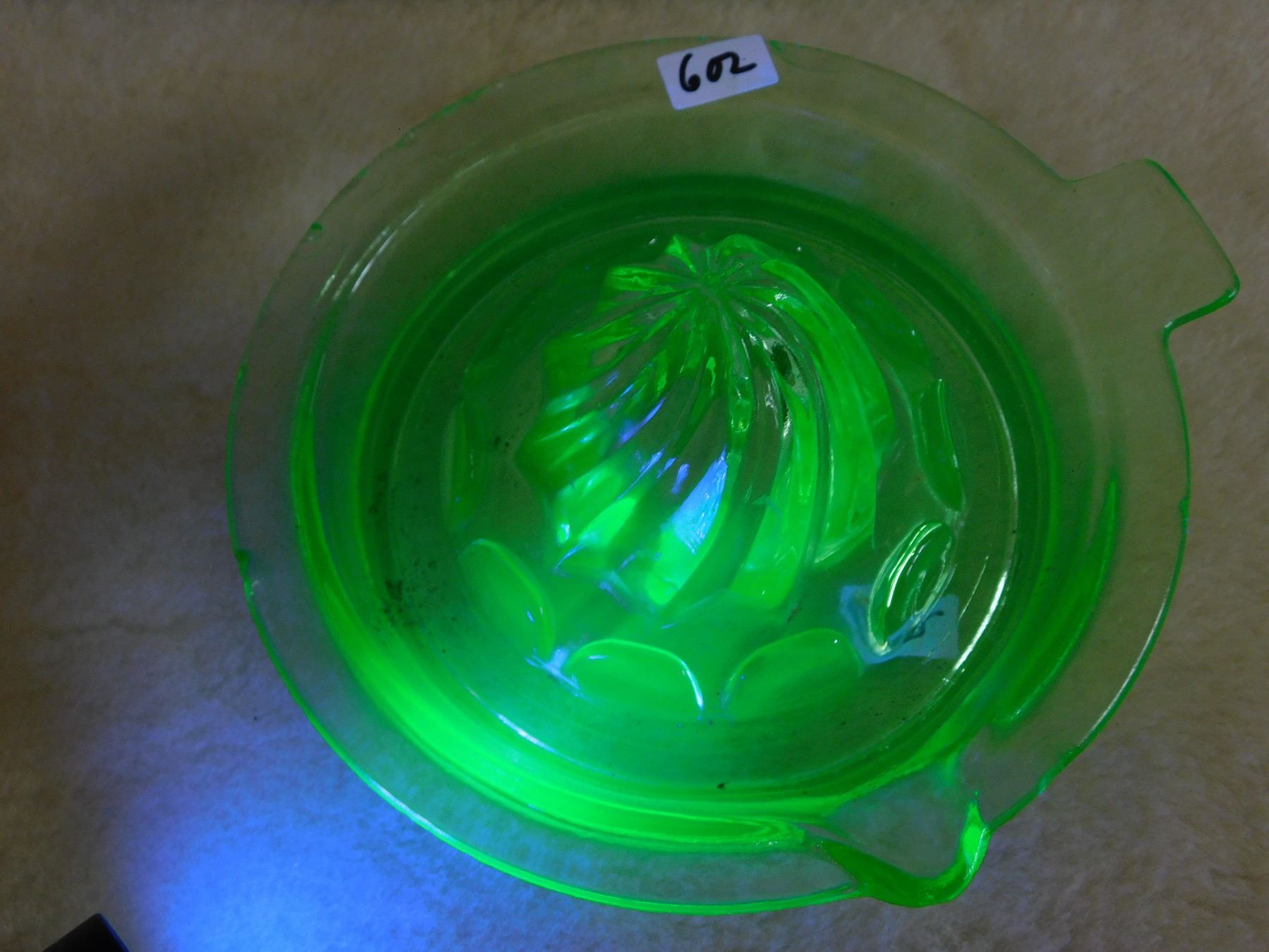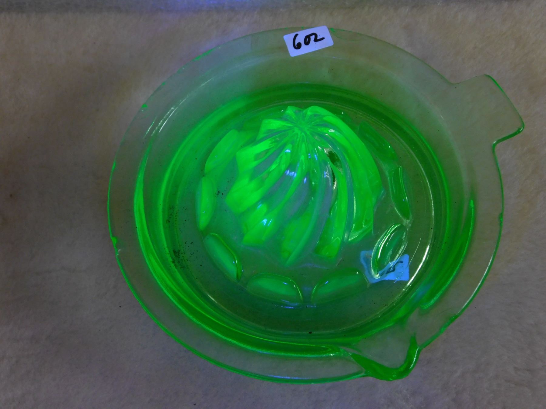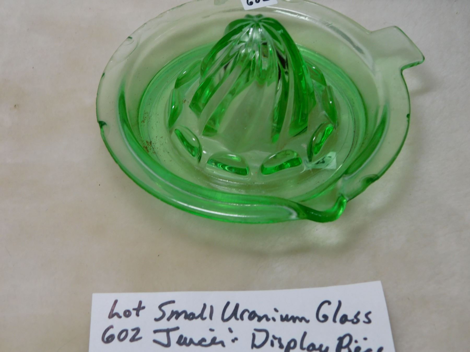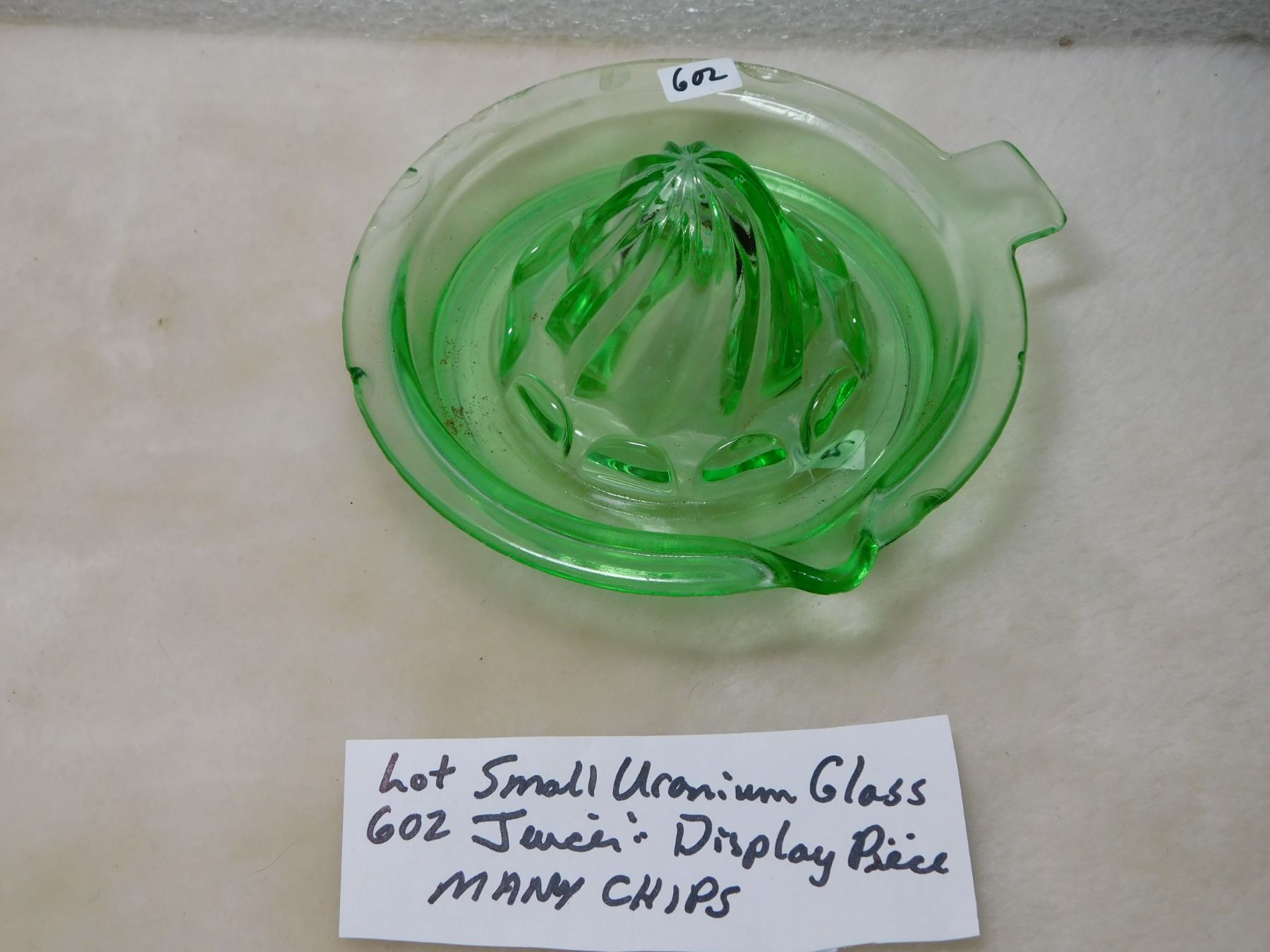 602. Uranium glass juicer many chips, good display
